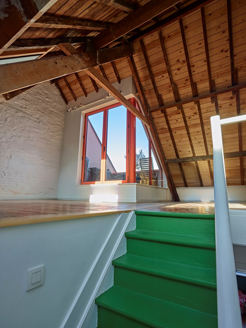 Als architect kent Thomas het belang van voldoende ventilatie. Het was evenwel een huzarenstuk om een centraal ventilatiesysteem in te werken in het verticale woonconcept van deze verbouwing. “De historische gevel had nog teveel ‘luchtlekken’ om voor een balansventilatie systeem D in aanmerking te komen. Met de Healthbox 3.0 van Renson hebben we gelukkig goede ervaringen als het op vraaggestuurde C-systemen aankomt. Je kan de installatie erg goed laten verdwijnen in de verbouwing, dat is net de schoonheid ervan. Zeker in projecten als dit, waarbij er weinig manoeuvreerruimte is. Hetzelfde geldt trouwens voor de raamverluchtingsroosters die zorgen voor de toevoer van verse buitenlucht. Mee gelakt in de kleur van de ramen, vallen ook die nauwelijks op.”