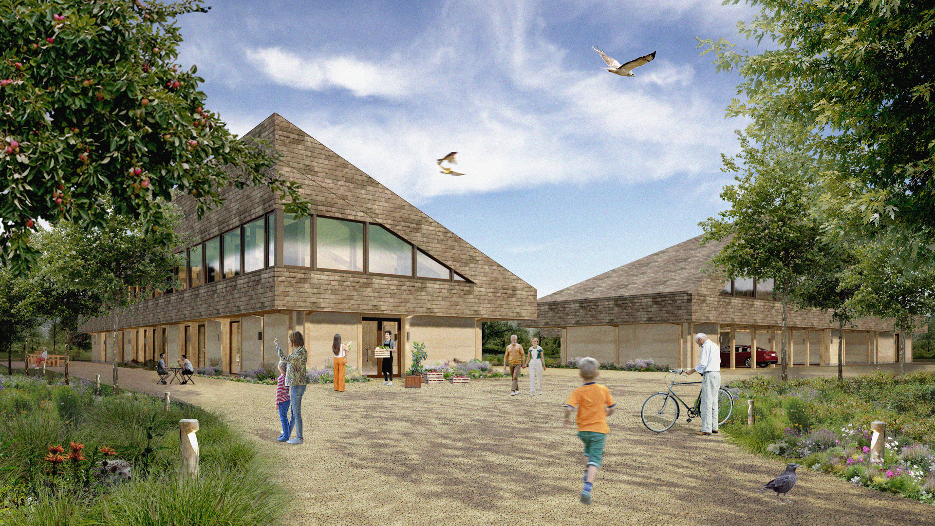 Het gebouw maakt deel uit van een groter geheel: een voedselbos van circa 20 hectare, ontwikkeld door Stichting Juniper. In dit ecosysteem groeien verschillende vegetatielagen door elkaar. Alle lagen samen vormen een natuurlijk netwerk waarin de planten elkaar versterken, zonder gebruik van bestrijdingsmiddelen.