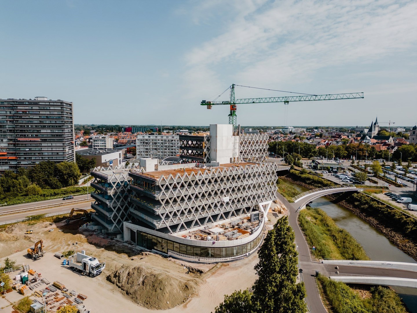 De bouw van Parking Keerdok, met de kenmerkende betonnen kruisen, was minutieus werk, vertelt Wim Straetmans, Executive Director van ontwikkelaar Kairos: “Het gevelraster oogt niet enkel mooi, maar draagt het volledige gebouw. Dat is baanbrekend. Het parkeergebouw is één grote, kolomvrije overspanning met extra vrije hoogte en kan daardoor gemakkelijk herbestemd worden voor kantoren, retail, bedrijven of zelfs woningen.”