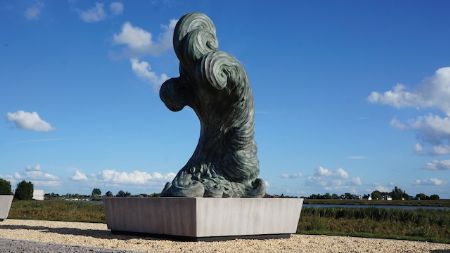 Beeldend kunstenaar Luk Van Soom kreeg de opdracht om voor de dijkversterking in het Nederlandse Lekkerkerk een kunstwerk te maken: ‘Frozen Wave’. Voor de kunstenaar was het vanzelfsprekend dat de zitbanken en het voetstuk, die drijvende ijsschotsen voorstellen, uit tijdloos beton vervaardigd zijn. “Licht speelt mooier in op iets dat niet vlak is. Daarom wilde ik de ijsschotsen niet gewoon glad laten maar een structuur geven. Met de maquette ben ik naar Stone & Style by Ebema gestapt. Daar is alles uitgetekend en hebben we een houten mal getimmerd. Daarin brachten we rubberen matten aan om een houtnerfstructuur te imiteren. Enkele dagen later hebben we de stukken ontkist en behandeld tegen vocht.” De bank werd opgenomen in het gamma Smooth Objects onder de naam Capulet.