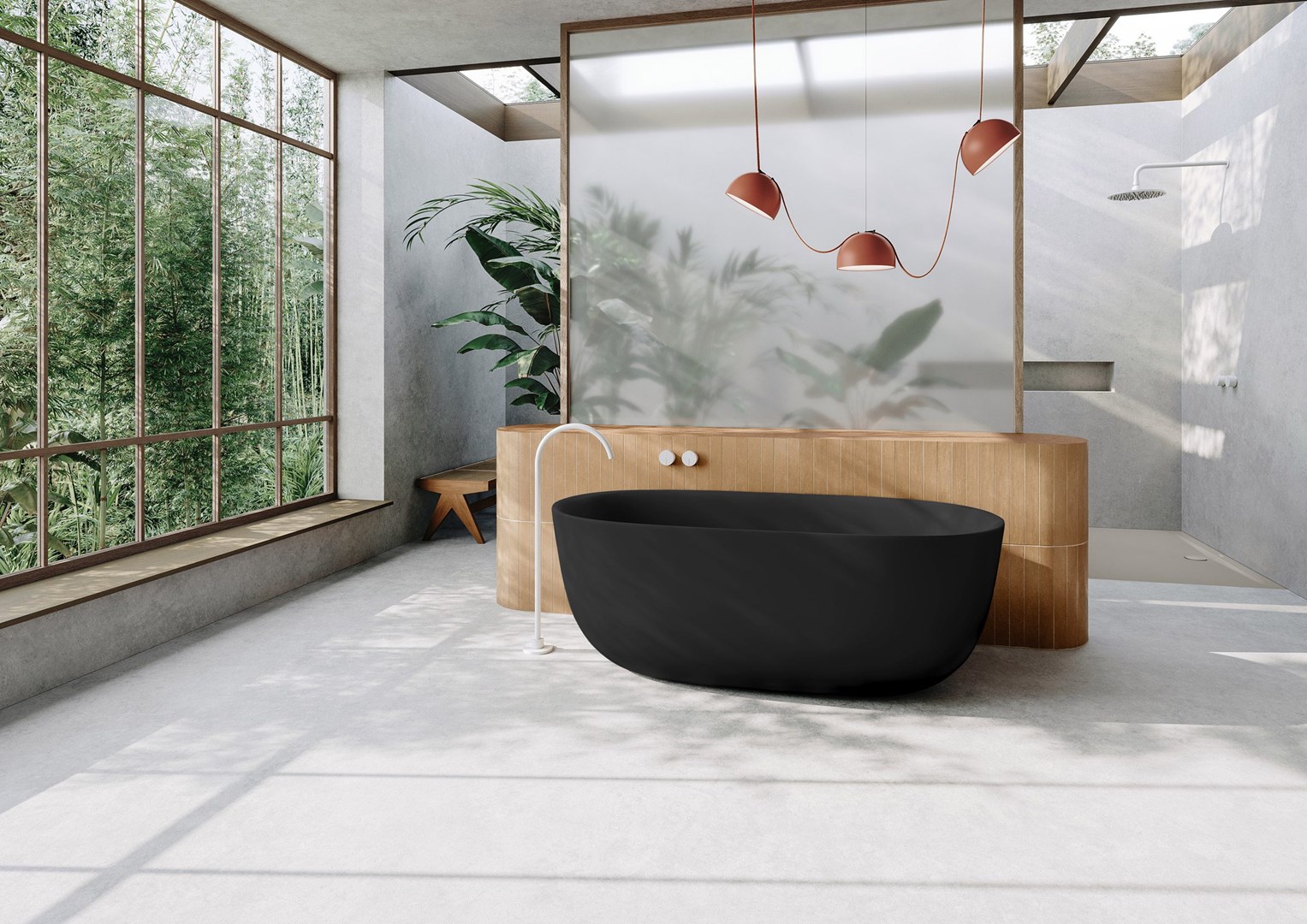 “Met deze vrijstaande badkuip heeft Stefan Diez een elegante designsculptuur gecreëerd die zich harmonieus integreert in de badkameromgeving—vloeiend en bijna zwevend,” aldus Kaldewei. De Meisterstück Oyo Duo is verkrijgbaar in negen kleuren uit Kaldewei’s Coordinated Colours Collection, met tinten als wit, grijs, beige en zelfs zwart.