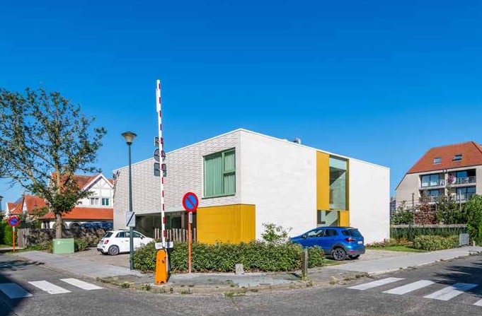 In Bredene realiseerde Steelandt . Declercq Architecten een tandartsenpraktijk met woning en studio waarin functionaliteit en architecturale expressie elkaar versterken. Gelegen op een hoekperceel in de groene Duinenwijk valt het gebouw op door zijn uitgesproken maar beheerste gevelarchitectuur. Het opmerkelijke metselverband, een eigentijdse interpretatie van het klassieke halfsteenverband met afwisselend terugspringende en uitstekende bakstenen, vormt een duidelijke signatuur en verleent het project een gelaagdheid die zowel vanop afstand als van dichtbij tot zijn recht komt.