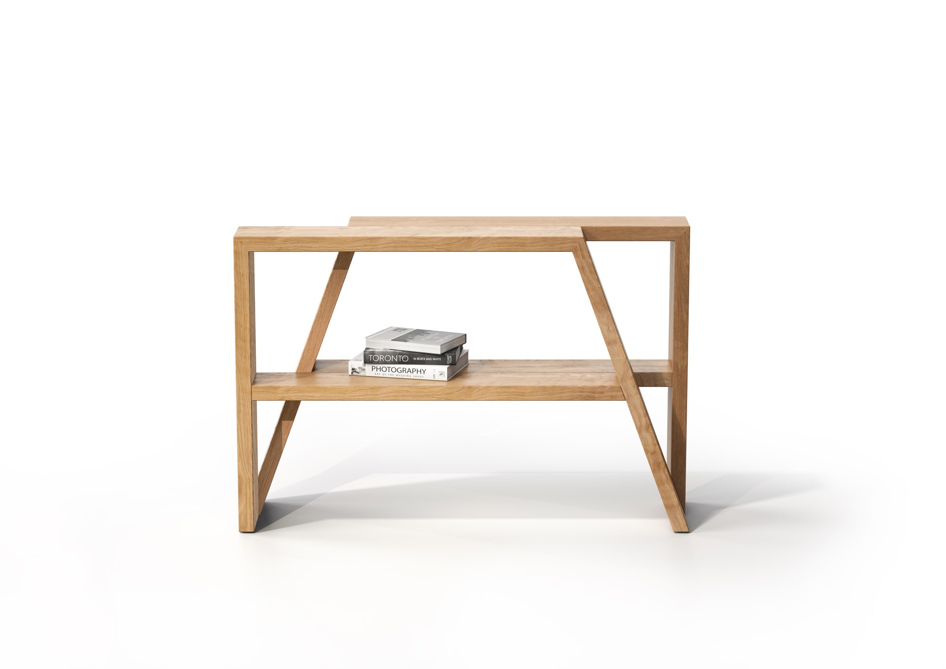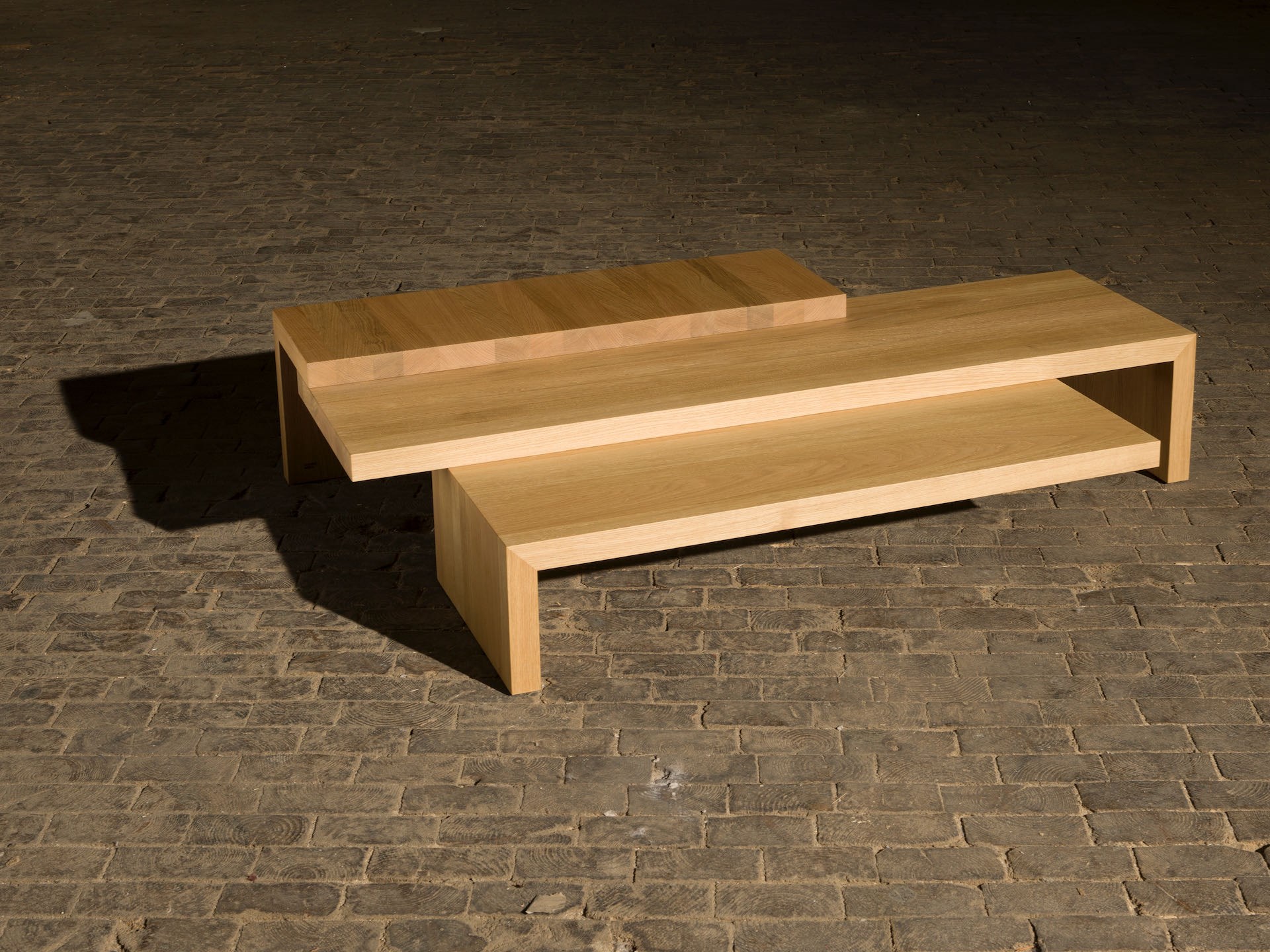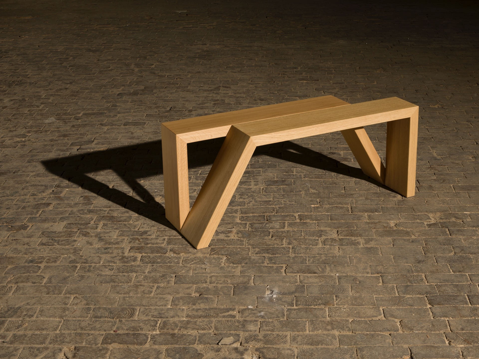 Casimir liet voor elk stuk een massief eiken plank omvouwen tot een meubel. Het zijn stuk voor stuk meubelklassiekers die we terugvinden in haast elk interieur - een tijdschrifthouder, een bijzettafel, een salontafel, een rekje - maar die door de vouwtechniek en zijn bijzonder boeiende vormen en een uitgekiend lijnenspel van de natuurlijke houtnerven een nieuwe dimensie krijgen.