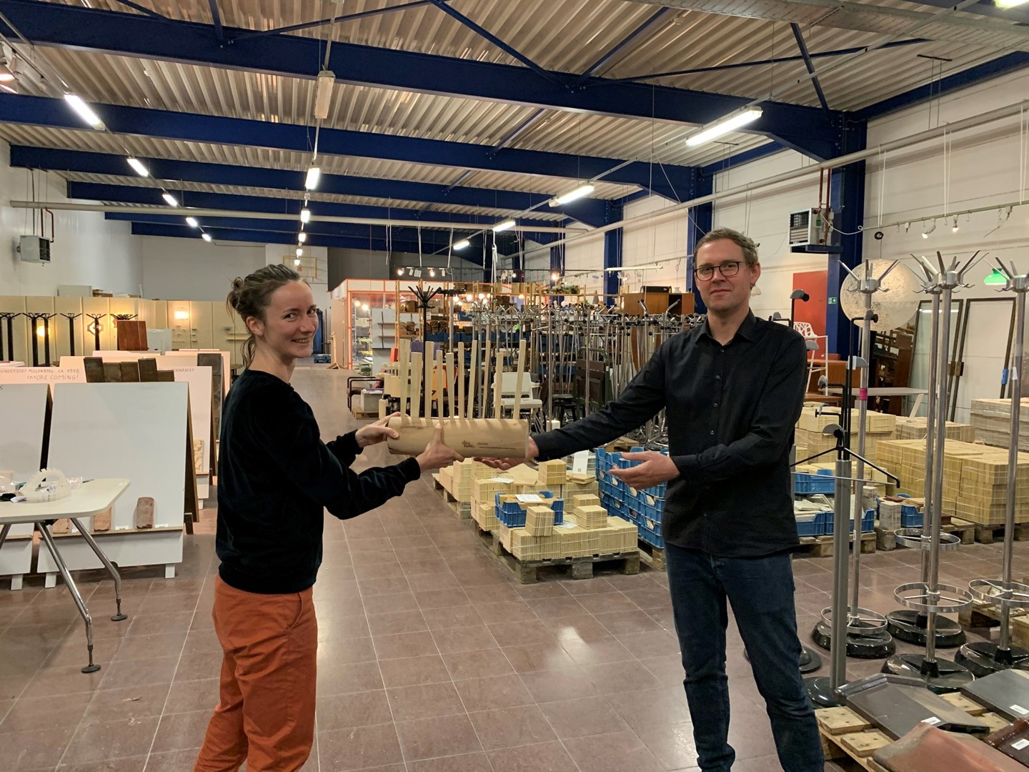 Mieke Vandenbroucke had de eer op het Circubuild-event op Batibouw begin maart als allereerste de Circubuild-award in ontvangst te mogen nemen. De experte duurzaam bouwen bij VIBE vzw leverde immers een substantiële bijdrage aan deze website en het gelijknamige boek. Zij besliste nu om de award door te geven aan Lionel Devlieger, projectmanager bij Rotor. Hoewel het de bedoeling was dat ceremoniële gedeelte telkens te laten doorgaan op een of ander evenement rond circulair bouwen, lag dat bij de eerste overdracht al meteen moeilijk omwille van de coronacrisis. Desalniettemin mocht Devlieger de Circubuild-award gisteren in de gebouwen van Rotor in Brussel toch uit handen van Mieke ontvangen, zonder publiek dus weliswaar, en met respect voor de social distance.
