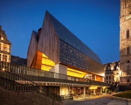 Het Harpa concertgebouw stijgt daarbij uit boven vier andere finalisten, waaronder dus de geprezen (én verguisde) Gentse ‘schapenstal’ en levert het winnende bureau een prijs op van 60.000euro. Daarmee vergaart het project, dat is vormgegeven met transparant en geschilderd glas en zo de omliggende haven van Reykjavik van prachtige reflecties voorziet, wereldwijde roem.