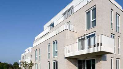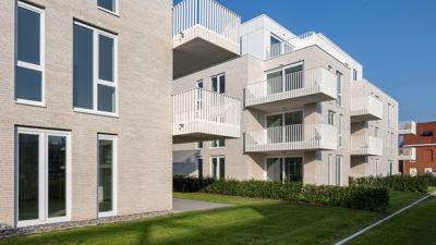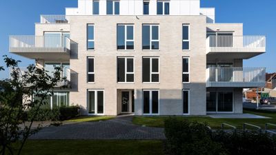 Bij het ontwerp werd sterk ingezet op afstemming met de bestaande wijk. De volumes tellen drie tot vier bouwlagen, en hun inplanting respecteert de schaal van de omgeving. De keuze voor lichte, sobere materialen en een heldere volumetrie zorgt voor een rustige uitstraling die tegelijk eigentijds en tijdloos is.
