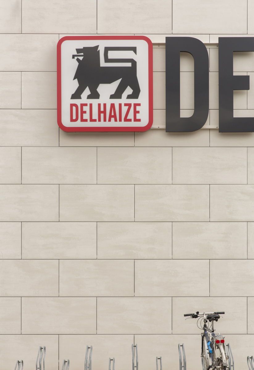 Contrast was belangrijk om het merk AD Delhaize extra in de verf te zetten, aldus Mas: “Voor de winkels van AD Delhaize is er een tendens om het logo met de leeuw erop, in zwart-wit-rood, sterker als merk naar de voorgrond te schuiven. Door grotere monochrome contrasten te gebruiken in de gevelbekleding is dit gemakkelijker te verwezenlijken. Indien er grijstinten gebruikt zouden worden wordt dat veel moeilijker.”