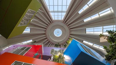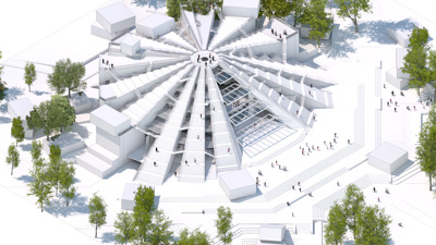 Voor het ontwerpteam vormde de bestaande structuur een blauwdruk waaraan publiek toegankelijke ruimtes voor educatie en evenementen zijn toegevoegd. De structuur is helemaal open als een sculptuur in het park. Ze kan via een glazen hek worden afgesloten. Bezoekers die het park en de sculptuur betreden, zien her en der gestapelde ‘dozen’ in verschillende kleuren en afmetingen te vinden, sommige gekanteld, andere recht, wat het park eromheen de atmosfeer van een festival geeft. Een soort gekraakte structuur.