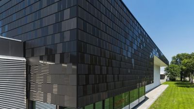 Het idee ging uit van ongewoon kleine, elkaar overlappende panelen waarmee een onderscheidend dakpansgewijs gelegd geschubd patroon gecreëerd wordt. Afhankelijk van de afstand van de kijker tot het gebouw ziet het er steeds opvallend anders uit: van ver af glad, maar van dichtbij onthult het zijn verspringende structuur. Voor de goede orde voegden de architecten er twee extra visuele lagen aan toe - ze combineerden verschillende afwerkingsvarianten en bedachten een ontwerp waarbij iedere Meteon®-schub er ongeveer net zo uitziet als een pixel op een computerscherm.