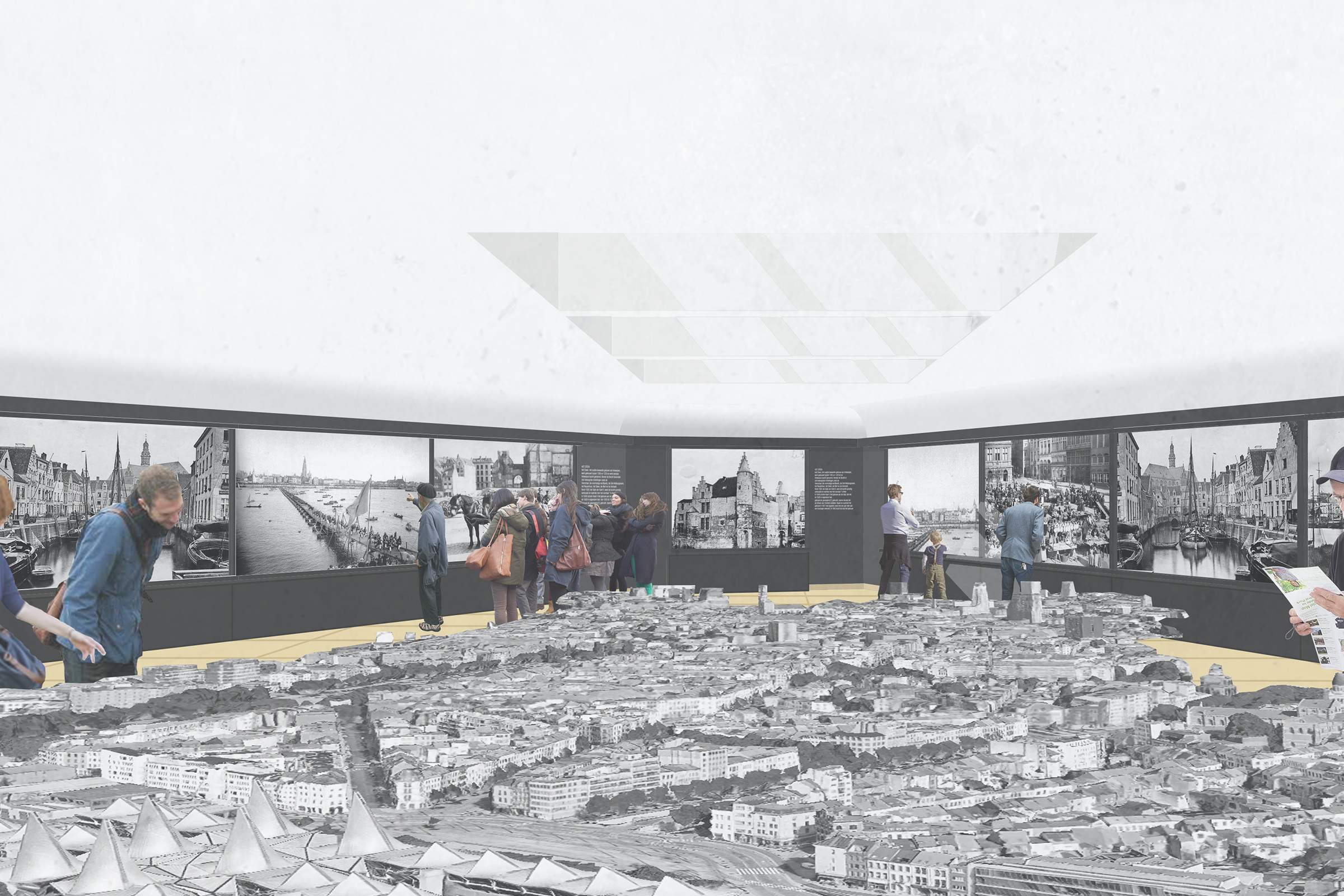 De poëtische noot kwam tot slot van het kunstwerk ALVAST: een verchroomde reling, hangend onder het Noorderterras, als tijdelijke sculptuur en tastbare voorbode van het nog te realiseren transferium. Een vorm van verankerd verlangen, tussen heden en toekomst. Het ontwerp van Callebaut Architecten en FVWW Architecten strandde op de tweede plaats, maar laat zien hoe erfgoed en vernieuwing ook op een andere manier samengebracht hadden kunnen worden.