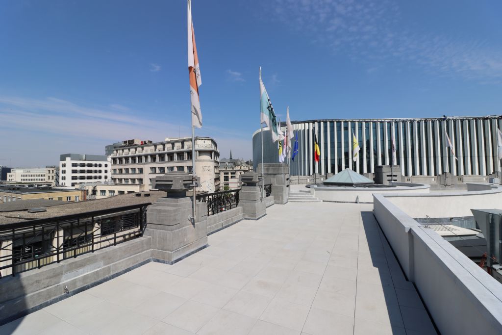 De blikvanger van het dakterras is het panoramische uitzicht, dat een originele kijk biedt op de stad Brussel enerzijds en het Koninklijk Paleis anderzijds. Het dakterras is uit veiligheidsoverwegingen niet permanent toegankelijk voor het publiek, maar zal op bepaalde momenten worden opengesteld tijdens publieke evenementen of specifieke gelegenheden.