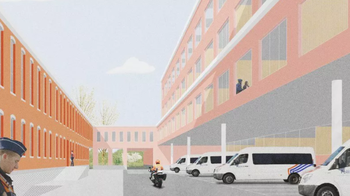 Onder de nieuwe vleugel komt een ruime ondergrondse parking die de parkeerdruk in de omliggende straten moet verlichten. Bovengronds maakt dit ruimte vrij voor groenzones die als buffer fungeren voor de buurt en bijdragen aan de lokale biodiversiteit. Tegelijkertijd blijven het bestaande buurthuis en het bijbehorende park op de site behouden voor de Gentenaars. Door deze ingrepen transformeert de voorheen gesloten enclave naar een beter geïntegreerd geheel dat de kwaliteit van de openbare ruimte rondom de politiegebouwen verhoogt en het woonmilieu verbetert.