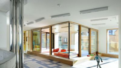 De architectenbureaus BUROBILL en ZAmpone Architectuur zorgen voor een laagenergetische verbouwing van een voormalig schoolgebouw tot een kinderdagverblijf voor 68 kinderen in samenwerking met Benoît van Innis. Het kinderdagverblijf Nieuw Kinderland maakt deel uit van de brede schoolsite Nieuwland in Brussel. Het project, in opdracht van Kinderdagverblijf Lutgardisschool Elsene, kan rekenen op de steun van de studiebureaus UTIL, BECO ARCADE.