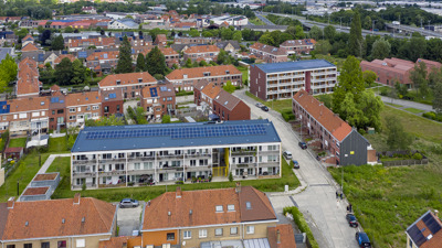 In Nieuw Kortrijk werd gekozen voor bouwvormen en zonoriëntaties die zorgen voor minder energieverbruik. Op de daken liggen zonnepanelen.