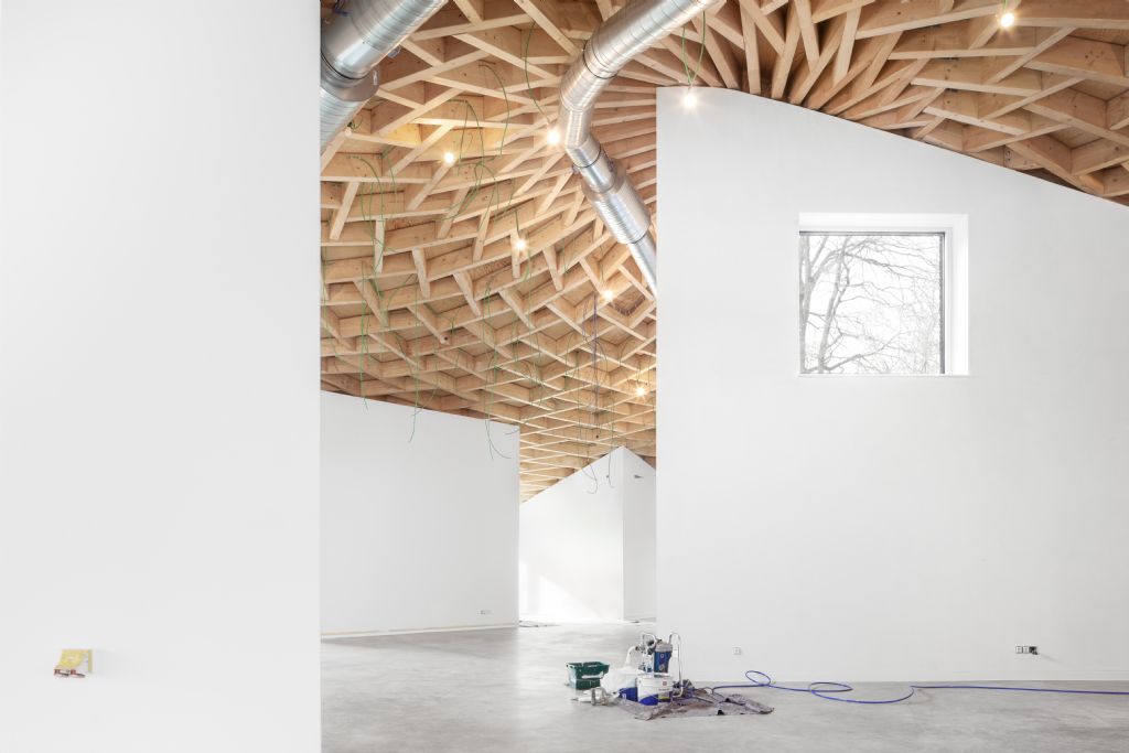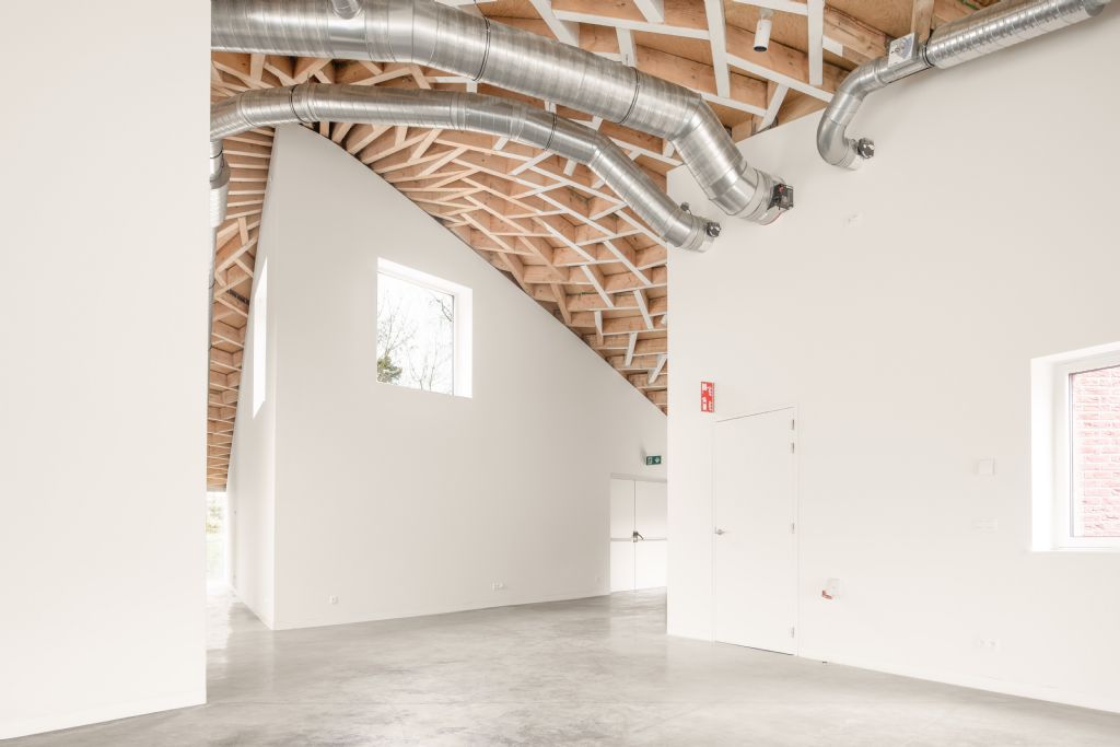 De ontwerpers wilden een niet-hiërarchische ruimte creëren en fysieke scheiding tussen productie- en tentoonstellingsruimte vermijden. ‘We wilden een ruimte ontwerpen die geen witte doos is maar een architecturaal bijzondere en kwalitatieve ruimte die op een actieve manier reageert op zijn landelijke en architecturale context”, klinkt het. Er is geen duidelijke grens tussen tentoonstellings- en werkruimte maar een reeks van kruispunten. Bezoekers en kunstenaars kruisen elkaar zonder elkaar te storen. Terwijl het hart van het paviljoen ontmoeting stimuleert, versterkt de periferie individuele ervaring.