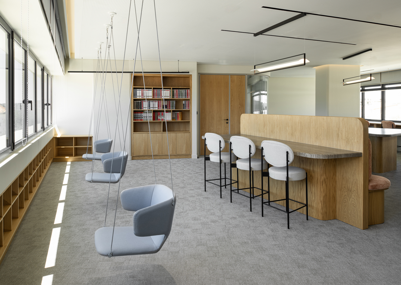 Binnen het uitgebreide gamma van 2TEC2 heeft Urban Soul Project een duidelijke favoriet. “Onze favoriete collectie is Hybrid”, zegt Petsiou. “Door haar veelzijdigheid past ze bij zeer uiteenlopende projecten: van elegant en premium tot speelsere omgevingen voor een jonger publiek.” In Athene werd die flexibiliteit benut door verschillende Hybrid-varianten te combineren, afgestemd op de specifieke zones binnen het gebouw.