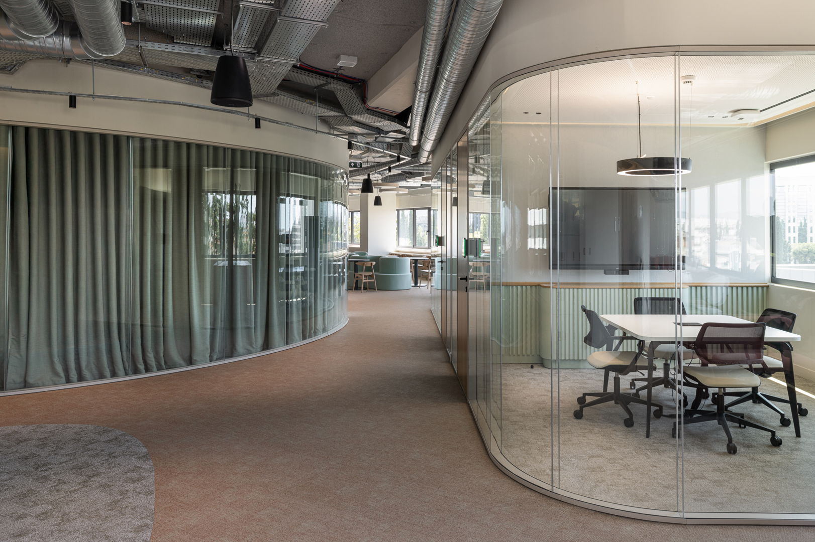 “Voor de PwC-kantoren wilden we een huiselijke en rustige sfeer neerzetten met een coherent pastelkleurenpalet in het volledige gebouw”, vertelt Christina Petsiou, Head of Offices Design bij Urban Soul Project. Die zachte tinten zorgen niet alleen voor visuele rust, maar versterken ook het welzijn van de gebruikers in een intensief gebruikte kantooromgeving.