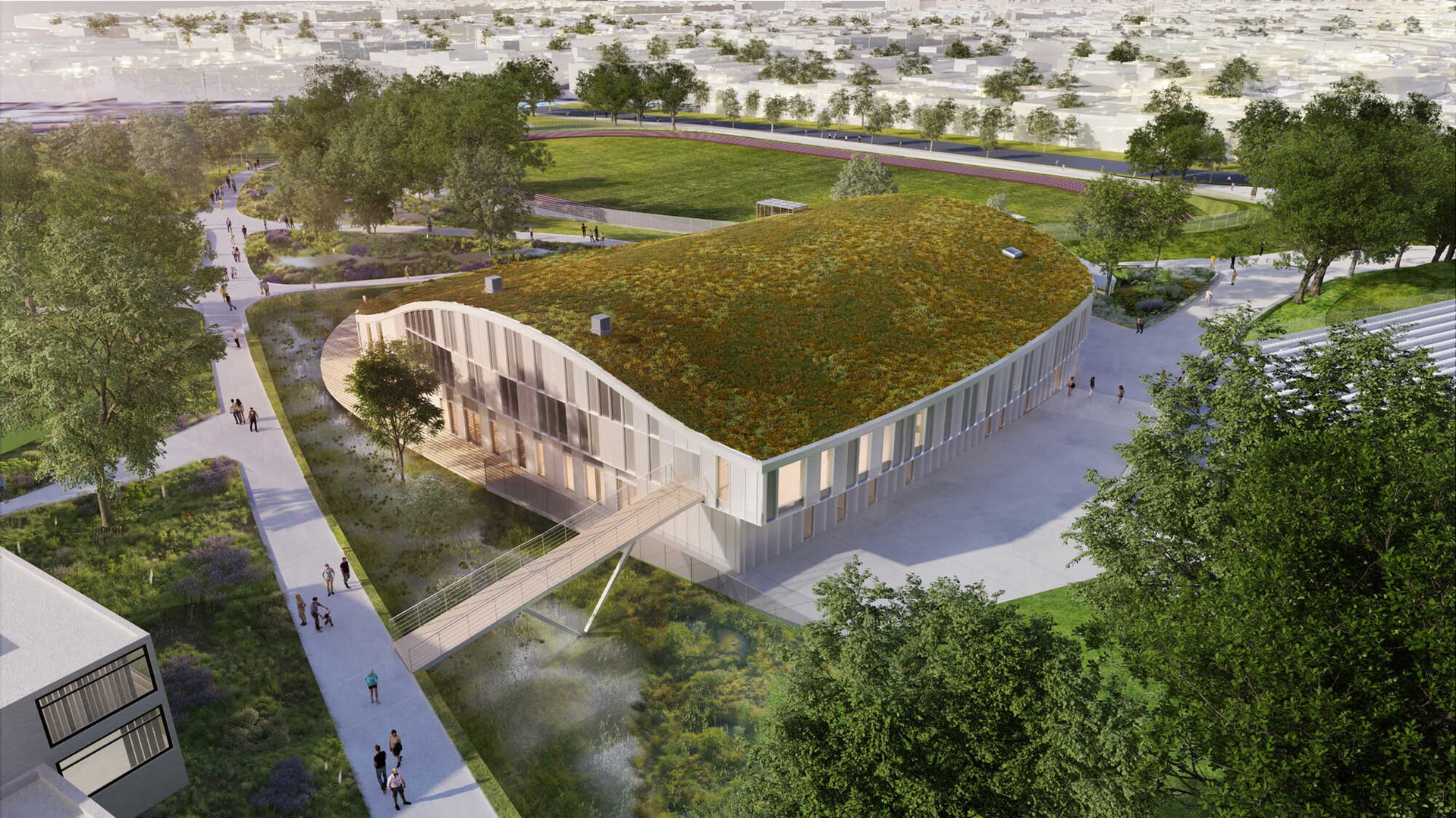 Het Heizelpark in het noorden van Brussel zal vanaf 2024 worden getransformeerd tot een nieuw sport- en stadspark. Het kloppende hart van dit park wordt gevormd door een multifunctioneel gebouw dat gerenoveerd en uitgebreid wordt. Met organische, afgeronde vormen en een groen dak voegt het gebouw zich elegant naar de contouren van het glooiende terrein. Architectenbureau ZJA tekende het ontwerp, in samenwerking met Atelier Ruimtelijk Advies, OMGEVING - landscape architecture urbanism, OSK-AR architecten en Witteveen+Bos. Het nieuwe sportcomplex zal sportfaciliteiten en een openbaar park naadloos integreren in het golvende landschap van het Heizelpark.