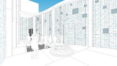 De kolomstructuur van de verschillende gevels en rond de patio zijn een subtiele refererentie naar de opbouw van traditionele gebedsruimtes. De gevelvlakken tussen de witte betonnen kolommen worden ingevuld met mozaiektegels. Hiervoor zal worden samengewerkt worden met hedendaags kunstenaars.