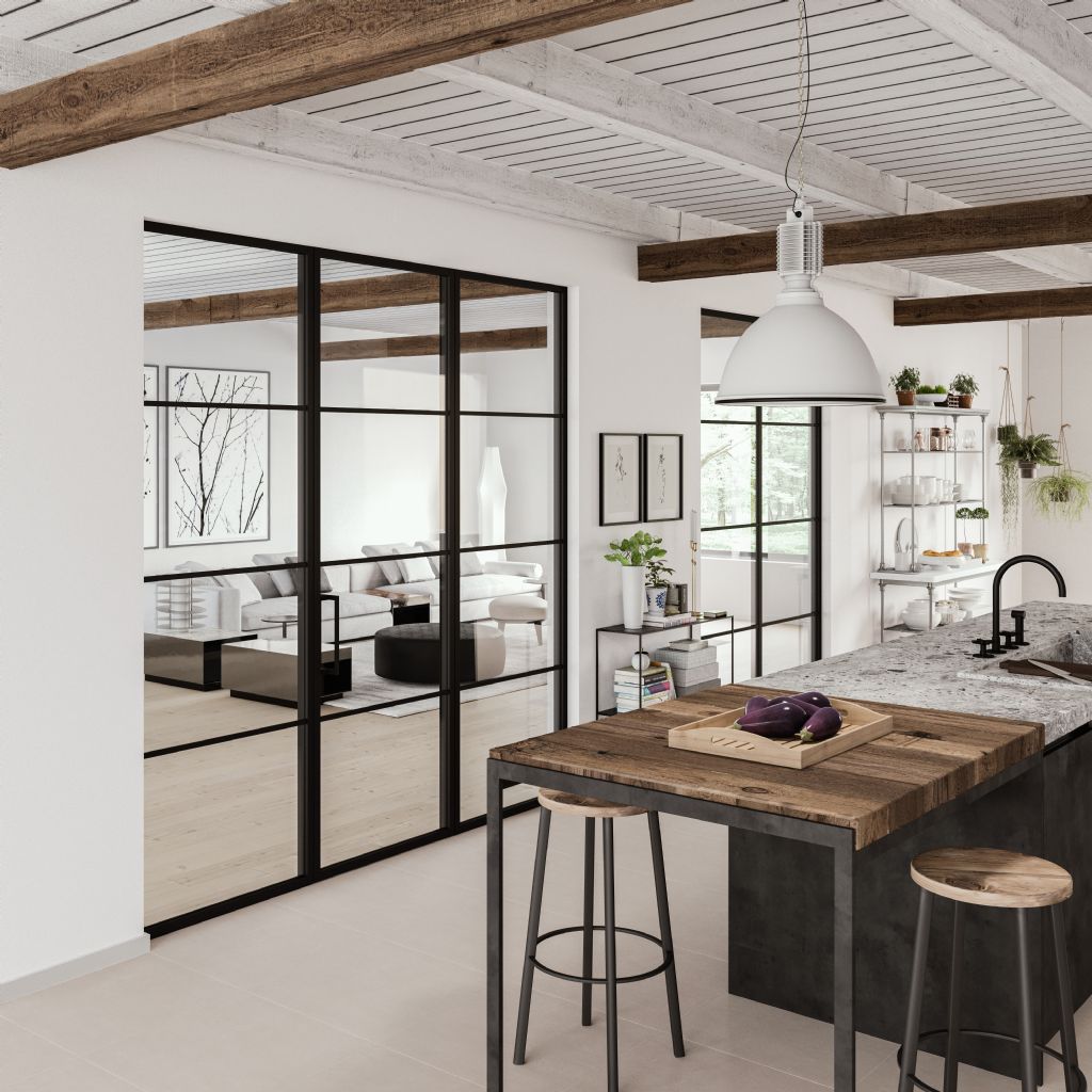 Glazen binnenwanden zijn gegeerd, maar worden pas echt praktisch als je er alle kanten mee uit kan: horizontaal, verticaal, met welk glasdikte dan ook, met of zonder glazen deur erin geïntegreerd. Dankzij de Divina structuur voor glazen binnenwanden van Arlu hou je alle opties open om een interieur te verdelen zonder verlies van licht.