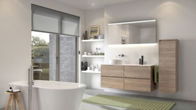 De troef van Molto is het creëren van ruimte door te combineren. De Molto-badkamermeubels zijn beschikbaar in poederwit, poedergrijs, eik natuur, eik grijs of massif eik. De lavabo's zijn vervaardigd uit kunstmarmer, solid, porselein, glas of blue belge.