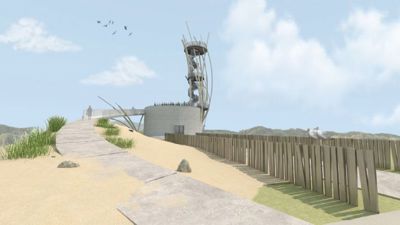 Aangezien het kustmilieu zijn tol geëist heeft op de oude, inmiddels inactieve watertoren, wil de gemeente Middelkerke de toren slopen en vervangen door een toeristische attractie. Architecten Delobelle ontwierp een hoge, beklimbare attractie die bezoekers een uitzicht biedt over het natuurgebied van 32 hectare groot en de kuststrook. De watertoren zal, op de basis van zes meter hoog na, volledig afgebroken worden. Uit deze basis zal de nieuwe constructie speels opflakkeren. Dankzij de moderne looks van de uitkijktoren lijkt de constructie uit de stenen sokkel te groeien als een bundel duin- of helmgras. De noodpompinstallatie die in de basis van de oude watertoren is ingebouwd, blijft behouden.