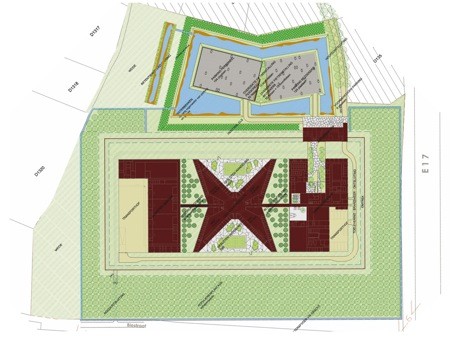 De gevangenis is compact, transparant en wordt op een harmonieuze wijze ingepland in het landschappelijk weefsel. Het complex wordt dwars ingeplant ten opzichte van de E17 omwille van een duidelijk perspectief en het aanzien van de kortste zijde. Rondom wordt een zone voorzien met een strak raster van populieren als bufferzone.