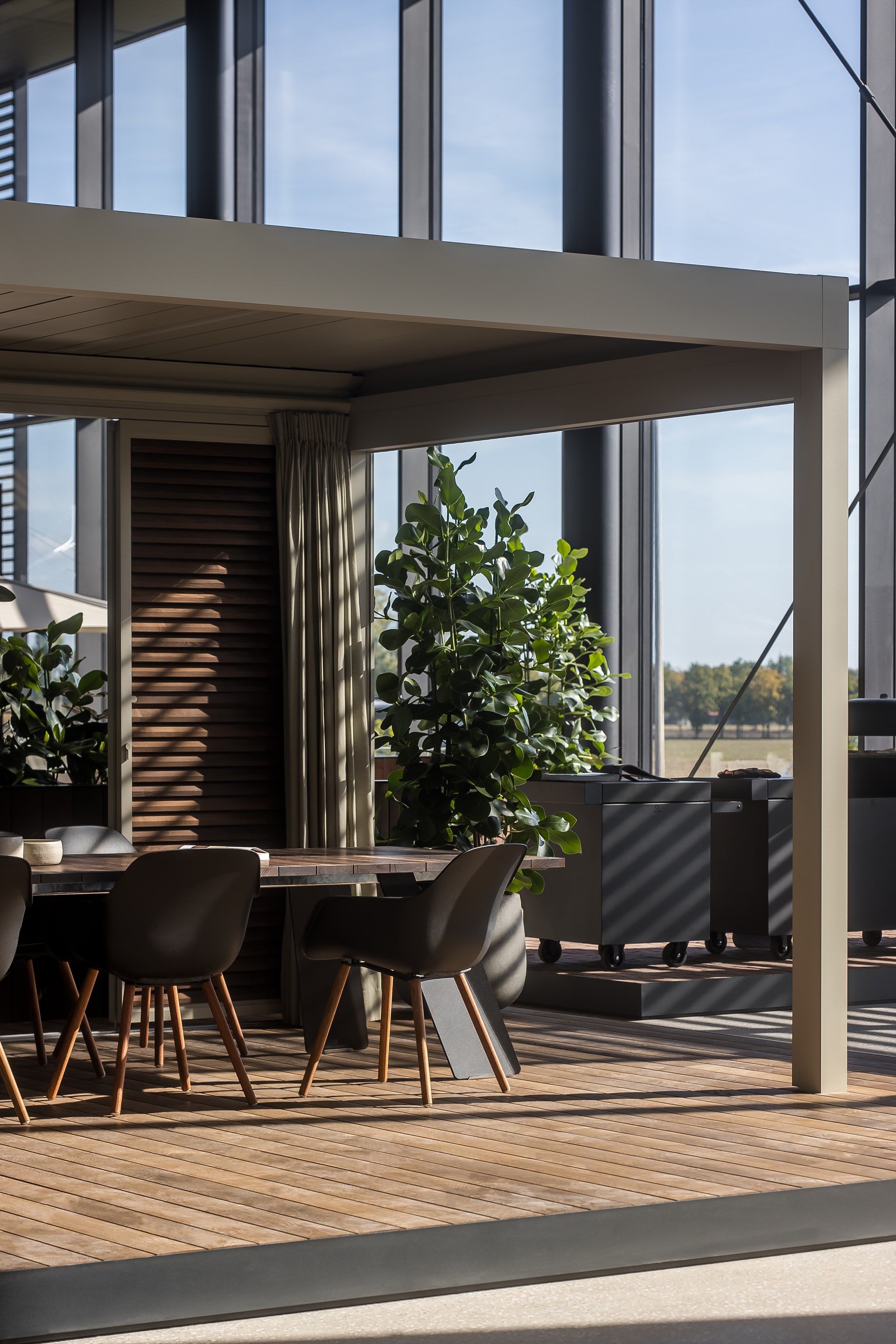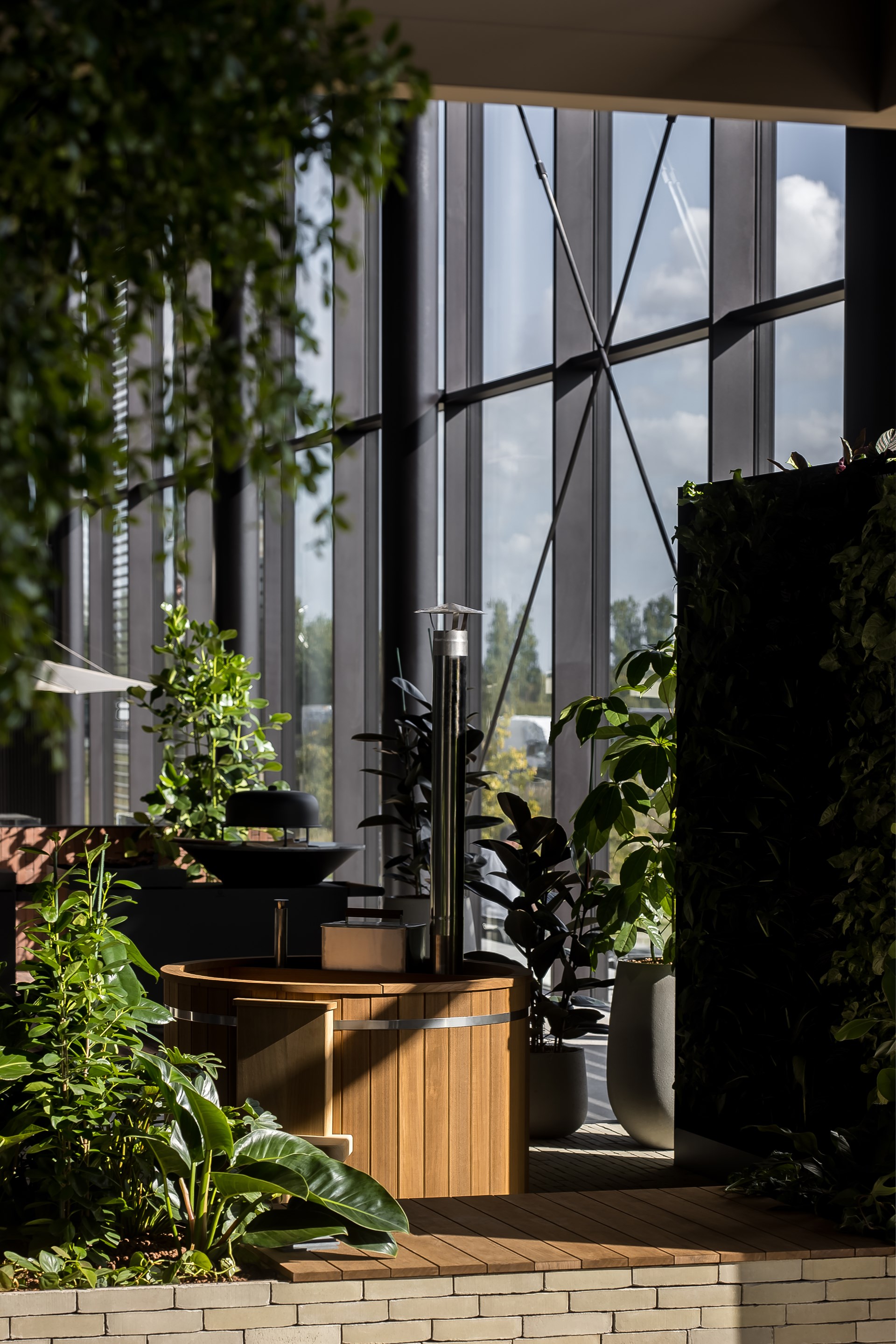 Dat Renson vol inzet op buitenleven hoeft niet te verbazen, nu dat volop in is. Maar de trendsetter in buitenleefruimtes kijkt verder dan enkel terrasoverkappingen. Outdoor living is immers meer dan een productgroep voor Renson, het Belgisch familiebedrijf dat zich verder ook specialiseert in zonwering en ventilatie. Buitenleven draait om totaalbeleving en dat straalt de nieuwe site op elk vlak uit. Het impressionante gebouw zelf – een ontwerp van Binst Architects – is opgevat als een ‘tuinpaviljoen XXL’ langs de E17 autosnelweg. De 380 meter lange gevel is bekleed met natuurlijke elementen, zoals groen en boomstammen. En met NOA outdoor living is Renson ook initiatiefnemer van het indrukwekkende inspiratiepark waar het met meer dan 30 andere high-end outdoor living merken de krachten bundelt op 30.000 m² aan totaalbeleving.