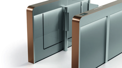 De Argus sensorsluizen van dormakaba staan voor nieuwe elegantie: een gesloten vorm, voor een vloeiende doorgangsbeweging. De modules zijn ontworpen met rechte lijnen en geometrische hoekafrondingen. De twee slanke structuren met glazen deuren vormen zo één symmetrische unit.