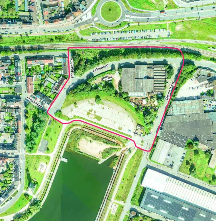 De volledige site wordt ingericht volgens een autoluw principe waarbij zachte weggebruikers centraal staan. De verkeersafwikkeling gebeurt via een nieuwe zijstraat van de Chinastraat, die toegang biedt tot twee grote ondergrondse parkeergarages om bovengrondse parkeerdruk in de wijk te vermijden. In het nieuwe inrichtingsplan schuift de Aziëstraat op in de richting van de spoorweg om meer ruimte te creëren voor de nieuwe woonontwikkeling. Talrijke paden doorkruisen het gebied en vormen groene verbindingen tussen de verschillende bouwblokken en de omliggende straten zoals de Kajuitstraat en de Roerstraat. Aan de Chinastraat wordt bovendien het volledige voetpad heraangelegd om de toegankelijkheid te verbeteren.
