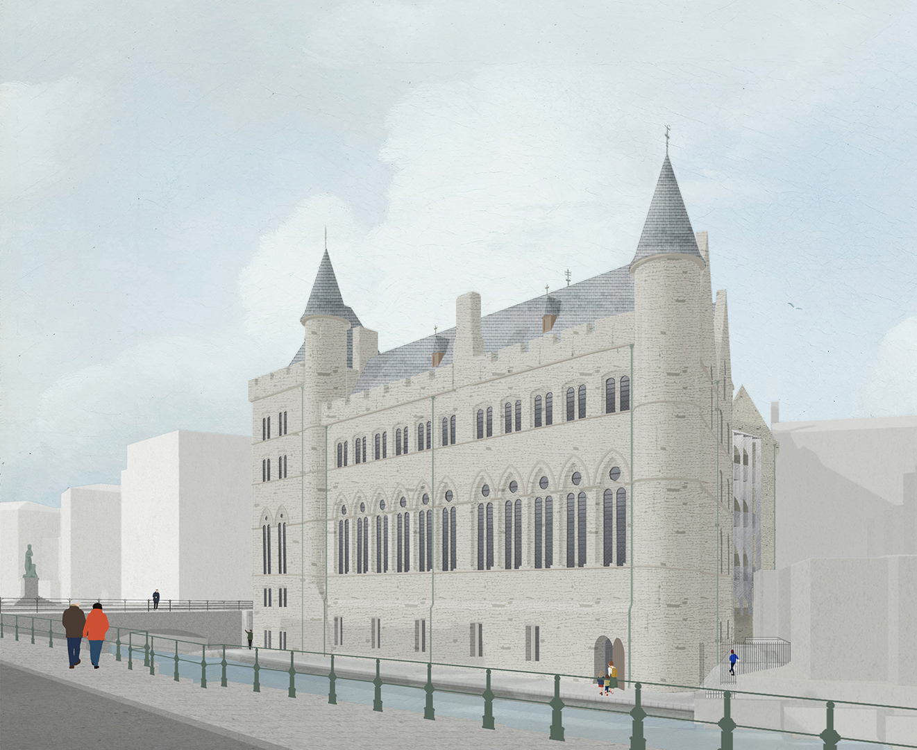 Het project is het resultaat van een lang traject waarin noaArchitecten samen met Architecture Workroom Brussels en MAAT-ontwerpers een uitgebreide haalbaarheidsstudie uitvoerden. Daarbij werd niet enkel gezocht naar een passende ruimtelijke invulling, maar ook naar een maatschappelijke missie die recht doet aan de schaal, de ligging en de historische gelaagdheid van het monument. Zo ontstond de ambitie om het Duivelsteen te laten functioneren als plek waar jong talent kan groeien, zonder het gebouw te reduceren tot decor of museaal object.