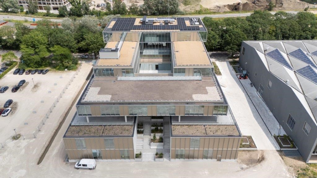 Dit alles maakt Nova One niet enkel interessant voor een single tenant als Dematic, maar in de toekomst eventueel ook voor verschillende andere bedrijven. Buitenruimtes op de diverse niveaus garanderen in dit verband extra flexibiliteit en de groendaken zullen mee voor een fraai uitzicht zorgen zodra ze in bloei staan. In combinatie met de verregaande focus op duurzaamheid en alle aspecten van de ESG-EU-regelgeving – er werd niet enkel ingezet op energie-efficiëntie, maar ook op CO2-reductie, waterbeheer, afvalminimalisatie en biodiversiteit, conform de BREEAM Excellent- en WELL Gold-standaarden – leidde dit tot de realisatie van een performant en toekomstbestendig gebouw, dat in mei 2024 voorlopig opgeleverd werd. De definitieve oplevering is voorzien voor mei 2025.