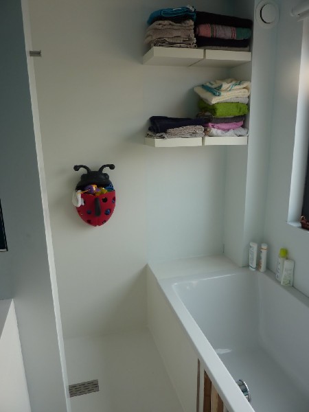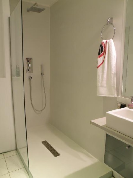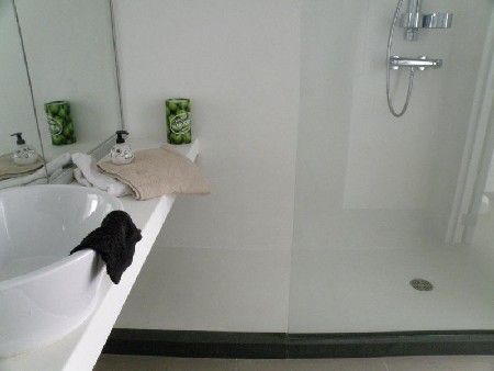Naadlozebadkamer.be koos voor een mix van polymeren omdat de opbouw van lagen en de technische eigenschappen van het materiaal een grote flexibiliteit bieden. De kunststof hecht zich op ongeveer alle onbeschilderde wanden. Hoe strakker de wand, hoe strakker het resultaat. De techniek is ook heel geschikt voor renovaties met houten roostering of voor houtskelet bouw. De hoeken krijgen een kleine radius met door vezels versterkt polymeer. Hierdoor verhoogt de stabiliteit en wordt onderhoud tot in de kleinste hoekjes makkelijker. De toplaag die Naadlozebadkamer.be gebruikt is dezelfde als bij zeiljachten. Het materiaal is oersterk, verkleurt niet onder UV-licht en is uiteraard 100% waterdicht.