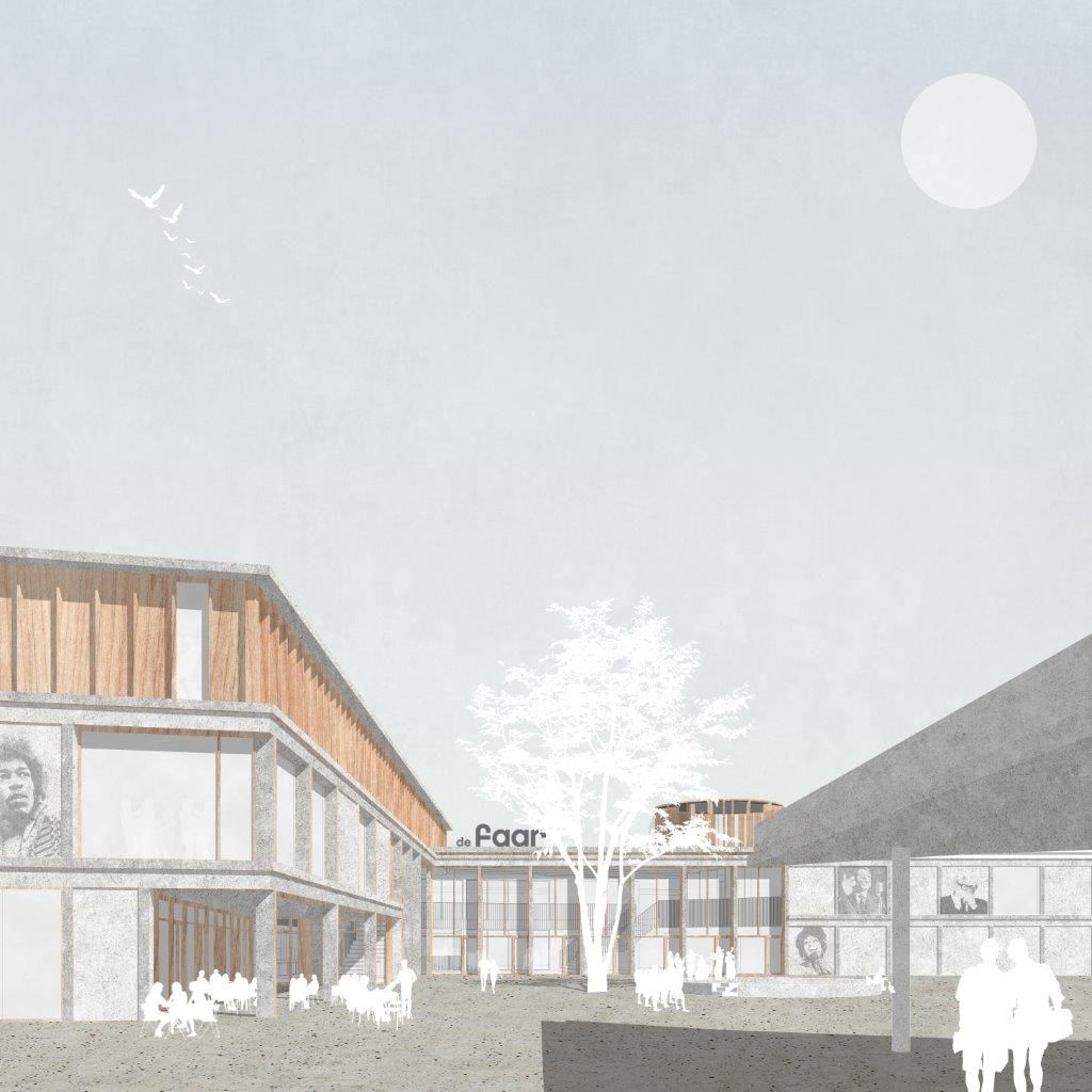De Faar is een gebouw dat in dialoog treedt met zijn omgeving. Samen met de al bestaande luifel op het plein vormt de Faar één stedelijke verblijfsruimte, een besloten verblijfsplek midden in de stad. De foyer zorgt ervoor dat alle functies visueel en ruimtelijk gelinkt worden tot één helder, overzichtelijk geheel waardoor het gebouw in één opslag leesbaar wordt. Hierdoor vervagen de grenzen tussen de verschillende functies en ontstaat er interactie en kruisbestuiving doorheen het hele gebouw.