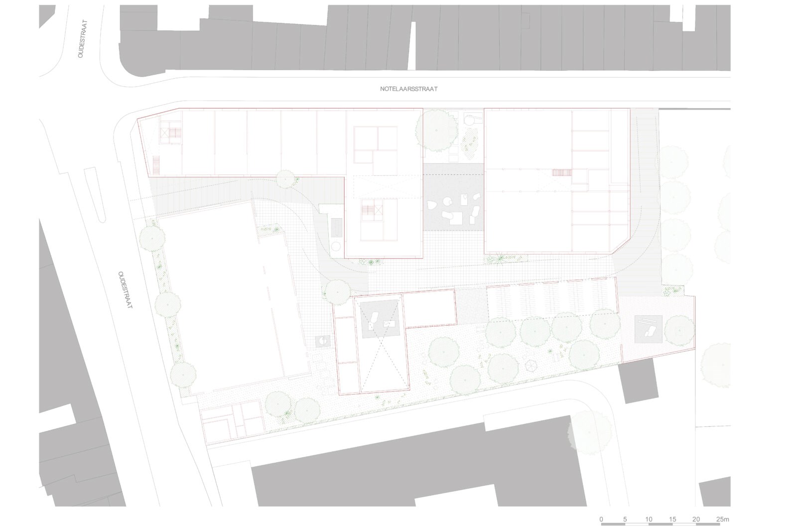 Voor het ontwerp van de nieuwe Academie van Hoboken is de vraag naar het gewenste soort buitenruimtes leidend geweest. Een academie is tenslotte geen gewone school, waar in de pauzes gevoetbald wordt op het schoolplein. In zekere zin heeft een academie geen nood aan één groot schoolplein, maar juist aan een verzameling van buitenruimtes, verschillend in karakter en schaal. Buitenruimtes die een directe betrokkenheid hebben op het gebouw en uitnodigen tot toe-eigening vanuit dat gebouw.
