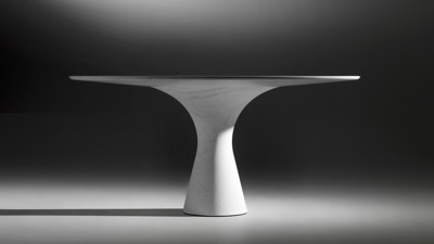 Het tafelontwerp Angelo M is de essentie van een ronde of ovale tafel in natuursteen met een sculpturale vorm, robuust materiaal, elegante belijning en verfijnde afwerking. De twee elementen, voet en blad, vormen samen één geheel. De onderzijde is één vloeiende curve vanaf de voet tot de tafelbladrand. Uitgevoerd in harde natuursteen geschikt voor buitengebruik is dit ontwerp ook een ideale tuintafel. Angelo M wordt verdeeld via exclusieve designwinkels in binnen- en buitenland.