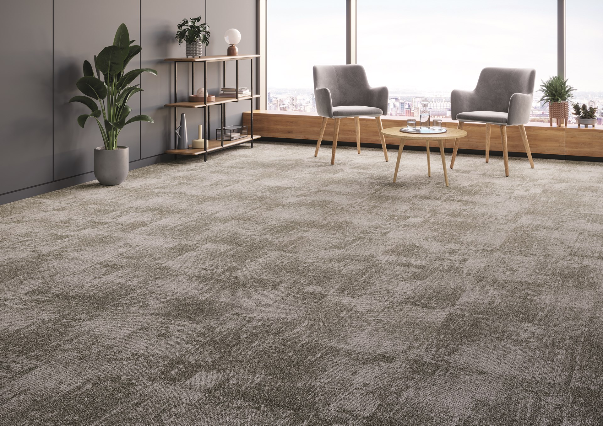 Verschillende looks zijn mogelijk door de Tessera Infused tapijttegels (50 x 50 cm) monolithisch, in dambordpatroon of willekeurig te plaatsen.