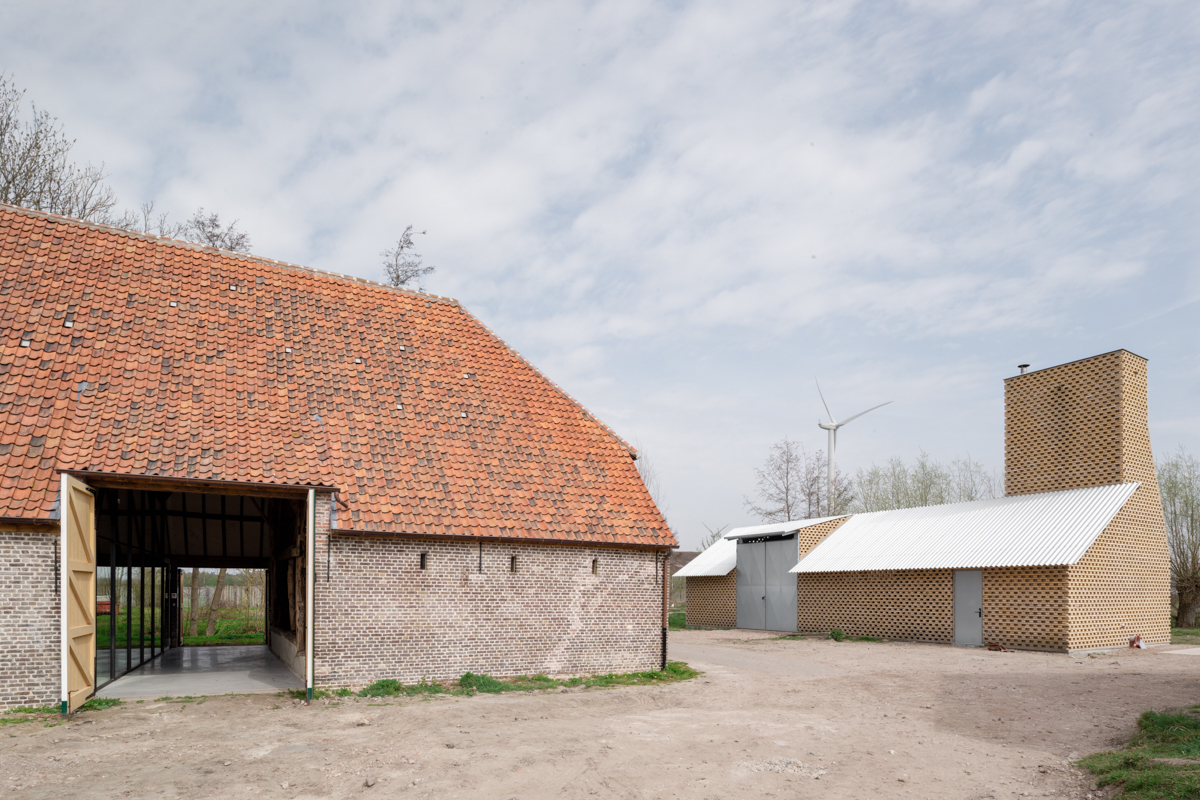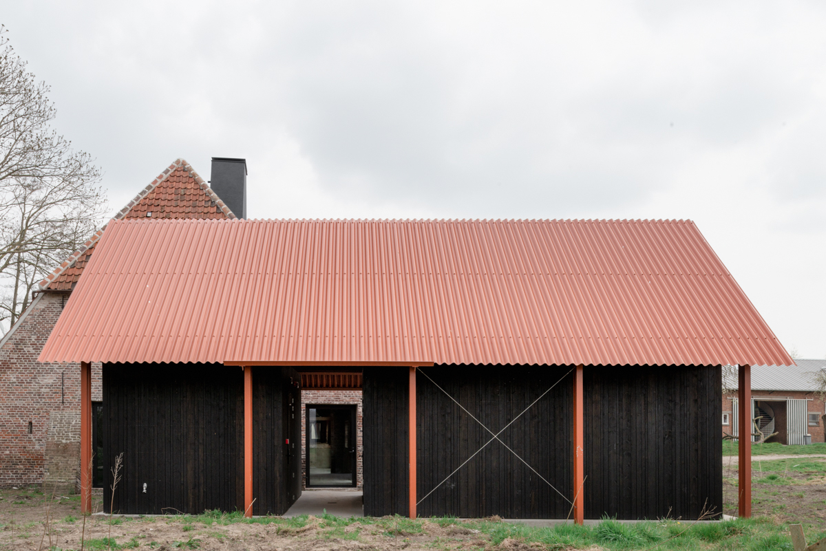 De dubbele strategie van ZOOM & Callebaut, met enerzijds het maximale behoud van het karakter van de bestaande gebouwen en anderzijds de bouw van twee nieuwe volumes waarbij ze in hun materiaalkeuze bewust radicaal zijn afgeweken van wat er al stond, zorgt voor een spannend contrast. Maar door de kleur, typologie en verhoudingen van de nieuwbouw te baseren op de bestaande dwarsschuur, zijn de architecten er tezelfdertijd ook in geslaagd om het geheel minutieus te integreren in de reeds aanwezige context.