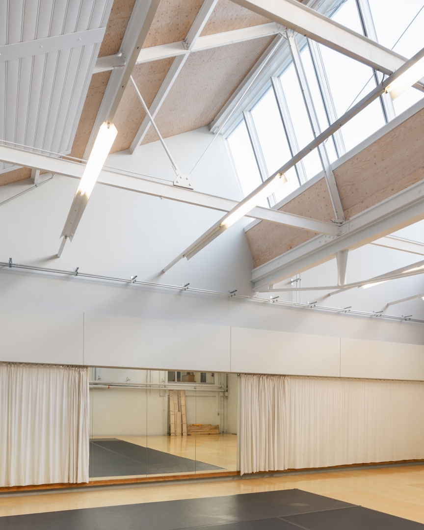 Rosas, Ictus en P.A.R.T.S. hebben elk nood aan een duidelijke eigen plek, maar evenzeer aan ruimte om samen te komen. Dat principe van ‘living apart together’ ligt aan de basis van de herontwikkeling. De logistieke keten tussen laad- en loszone, opslag, studio’s en performance space werd rationeel hertekend. Eenvoudige circulatiepatronen zorgen ervoor dat instrumenten, decors en dansers zich efficiënt doorheen het complex bewegen, zonder de dagelijkse werking te hinderen.