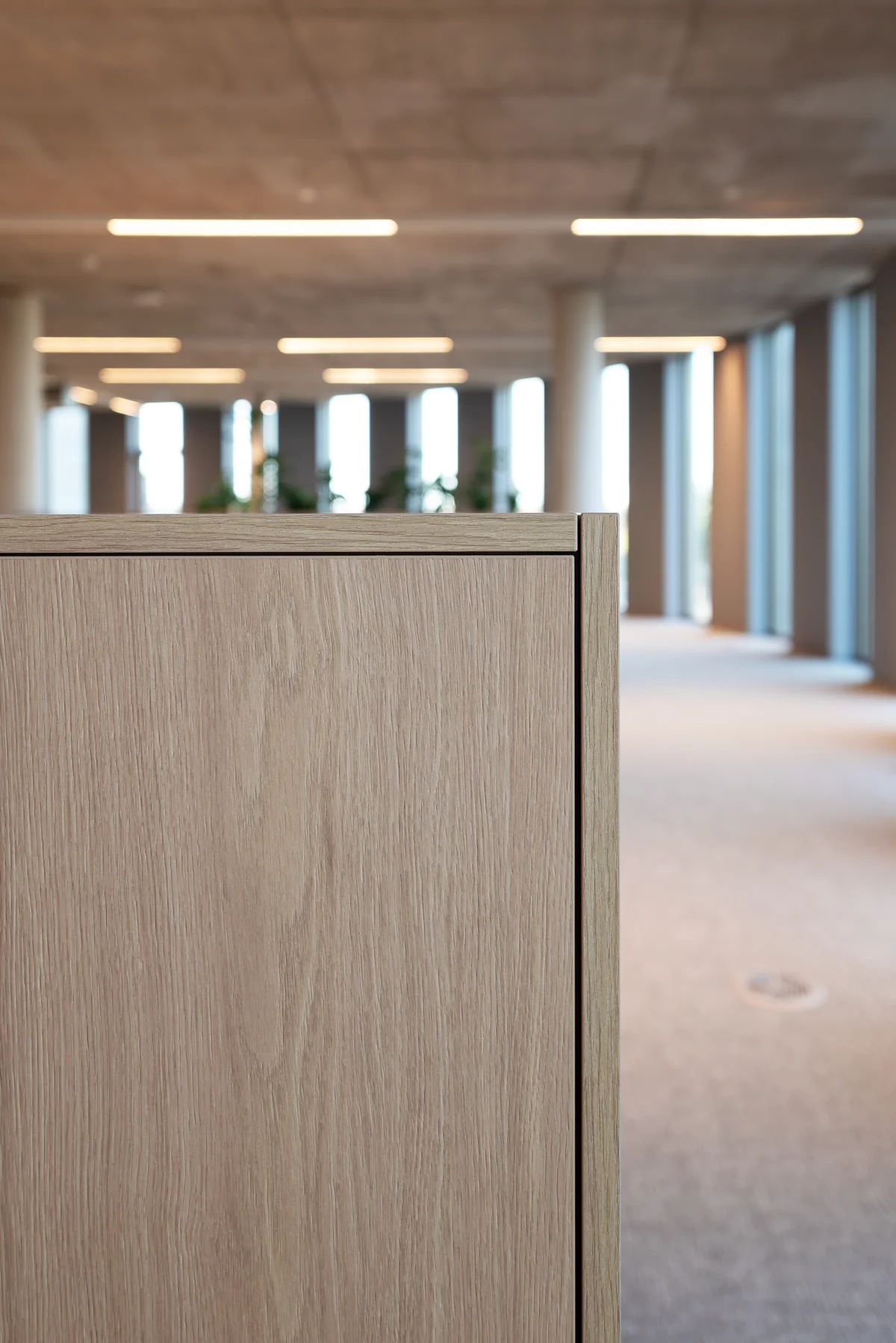 Veronique Hoflack, President van Unilin Panels, voegt toe: “Unilin Panels telt ondertussen1380 medewerkers, die zich allemaal elke dag 100% inzetten. We willen voor hen een fijne en stimulerende werkomgeving creëren. In het ontwerp van het nieuwe kantoorgebouw staan onze medewerkers centraal in onze gedachten. De kantoren moeten hen in de eerste plaats de ruimte bieden waar ze zich goed voelen. Waar ze kunnen innoveren, samenwerken en focus vinden. Kortom, het is een werkomgeving op maat van onze collega’s. Het interieur is trouwens geïnspireerd op een moodboard dat onze collega’s volledig zelf samenstelden.”