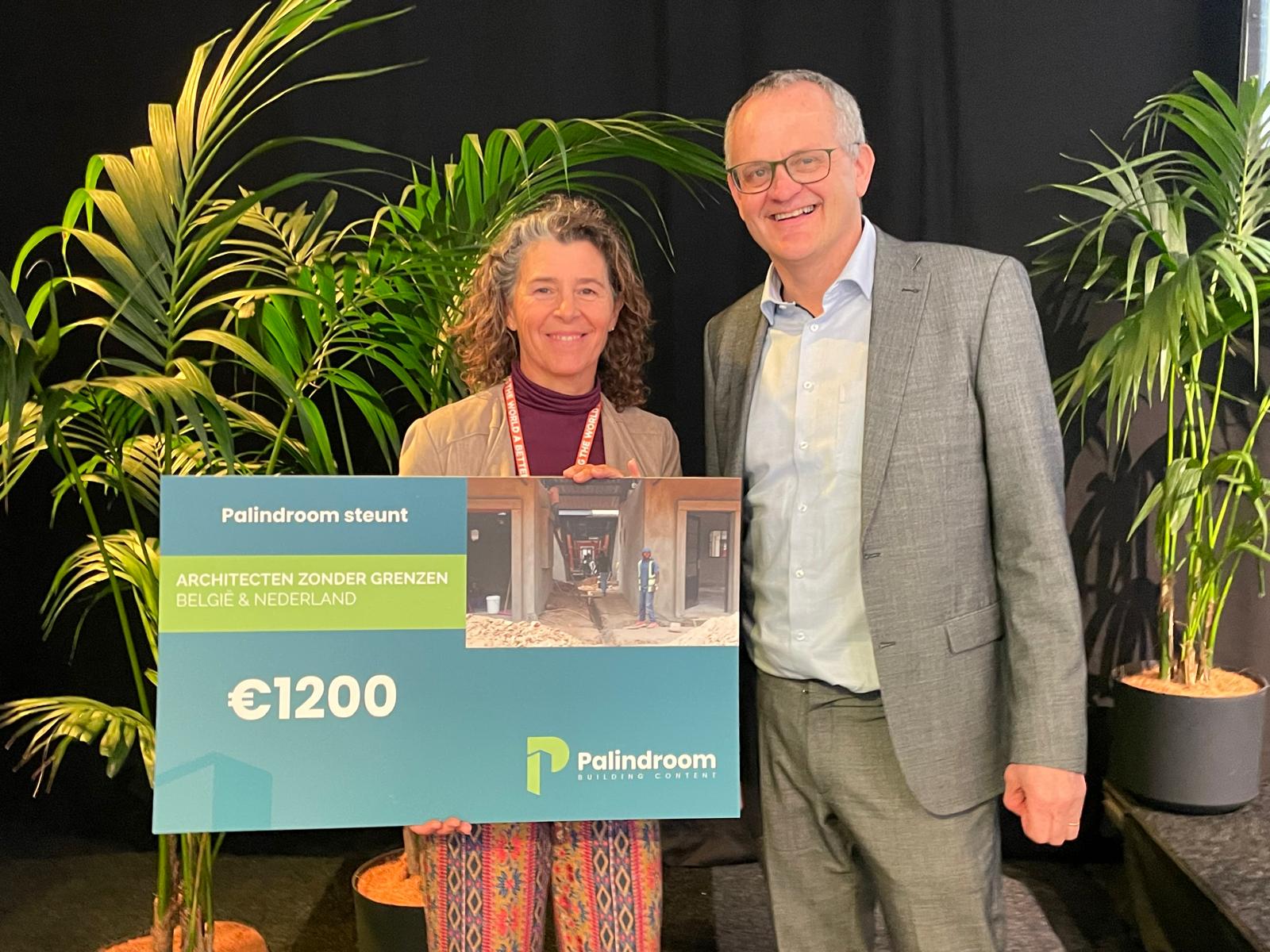 Architectuur, duurzaam ondernemen en quizzen. Drie dingen die Palindroom nauw aan het hart liggen. Met de quiz die Architectura organiseerde op Architect@work komen de drie mooi samen. Met de hulp van sponsors Xinnix, Paulussen Houthandel en Rockfon, kon Palindroom twee cheques overhandigen aan Architecten zonder Grenzen en de Maggies van DMOA Architecten.