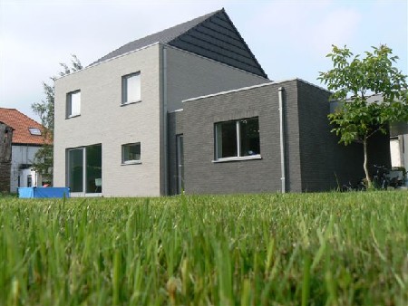 Passiefhuizen werden oorspronkelijk veelal uitgevoerd in houtskeletbouw, maar het is ook perfect mogelijk met traditionele bouwtechnieken en materialen zoals deze realisatie laat zien. De woning haalt een E-peil van 46 en een K-waarde van 17. Volgens Recticel en Wienerberger biedt het principe massief passiefbouw heel wat voordelen ten opzichte van de ‘traditionele’ passiefwoningen. Doordat hiervoor de traditionele materialen en technieken gebruikt worden, is de drempel voor de bouwheer en ontwerper veel kleiner en bovendien kan zo mee geprofiteerd worden van de thermische inertie van baksteen. Baksteen kan de warmte accumuleren en die op koudere momenten weer vrijgeven, hetgeen resulteert in een constante temperatuur zonder warmte- of koudepieken.