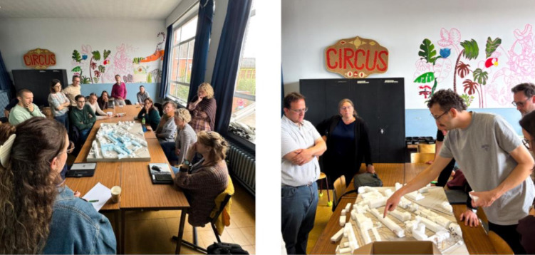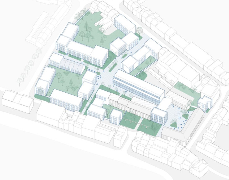 Als één van de drie historische schoolsites in centrum Beringen, werden de leegstaande schoolgebouwen enkele jaren terug opnieuw ingenomen door creatieve initiatieven en kleine ondernemingen. Dit expertiment bracht nieuwe energie met zich mee, en toonde tegelijk een een nieuwe houding over stadsontwikkeling. Tijdelijk programmeren heeft een waarde en ook de houding van de besturen evolueert mee. De hoofdopgave lag dus niet zozeer in de activatie van de site of de verweving met het centrum van Beringen, maar net in hoe er verder gebouwd kan worden op het bestaande ecosystem van gebruikers richting een duidelijke toekomst als levendige, duurzame stadswijk waar wonen, ondernemen en ontmoeten samenkomen.