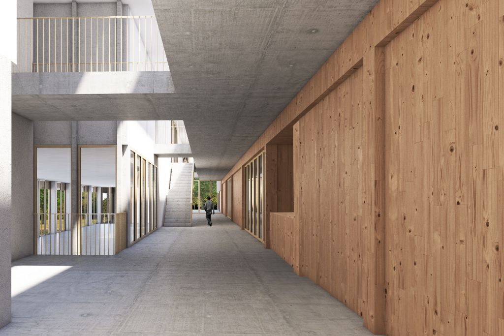 De inkomfoyer als sociale ontmoetingsruimte zal het ankerpunt zijn van de verschillende functies. De uiteenlopende programmaonderdelen worden zichtbaar verbonden. Zo vinden ontmoetingen plaats tussen sporters en andere bezoekers, tussen studenten en buurtbewoners, tussen jong en oud.