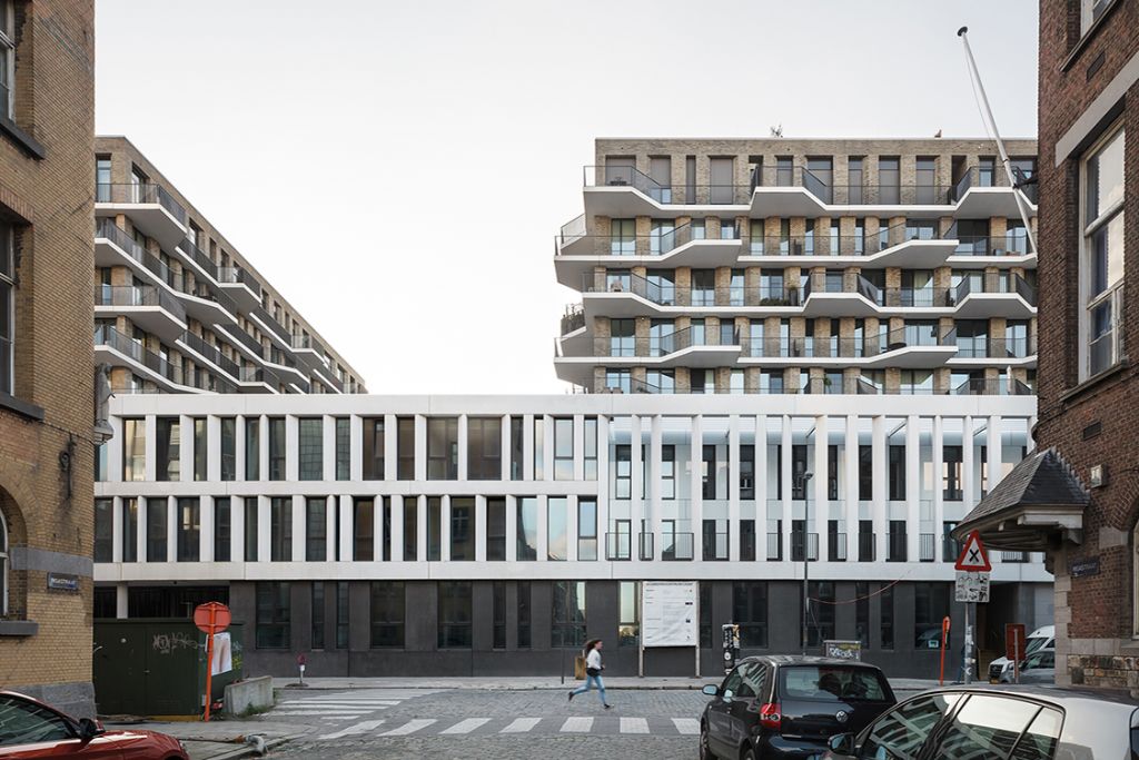 De opgave was complex: op een diep bouwblok een groot aantal wooneenheden realiseren, waarbij elke woning toch kan genieten van voldoende lichtinval en zichten. Tegelijkertijd moet het project leven brengen in het nieuwe stadsdeel. POLO Architects en META architectuurbureau ontwarden de knoop. Het resultaat is een opmerkelijk bouwblok met een typologie zonder precedenten in België.
