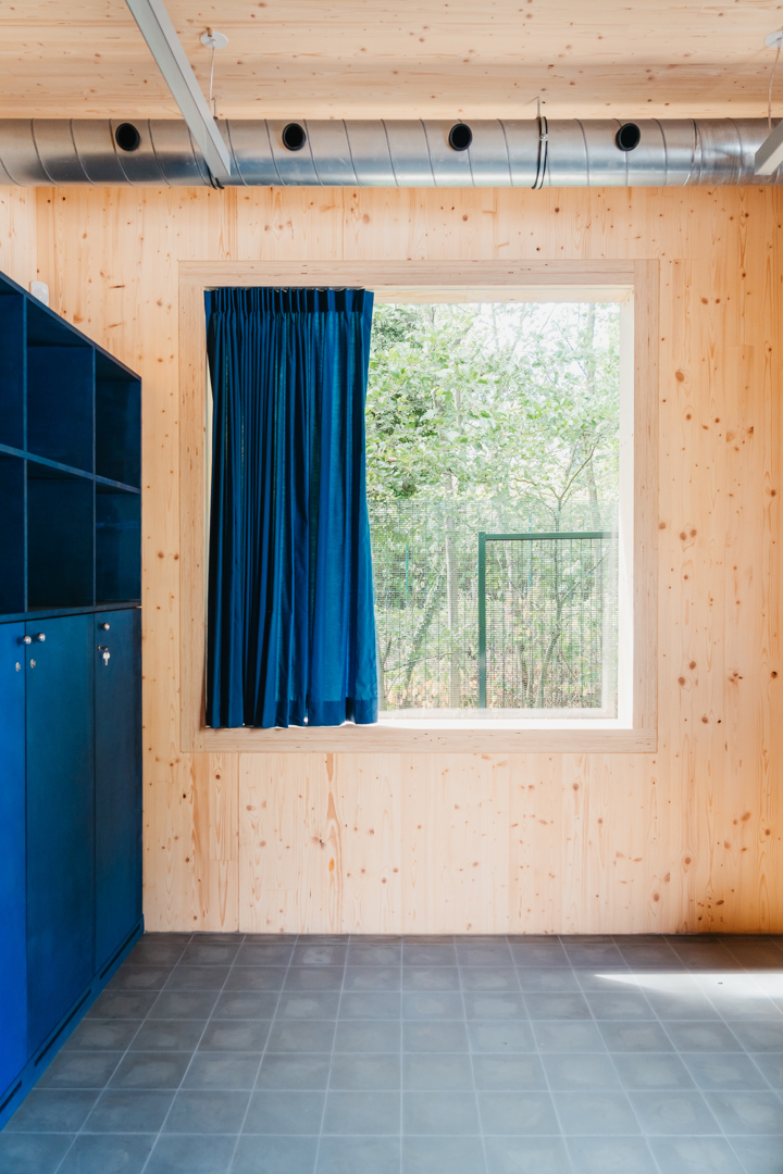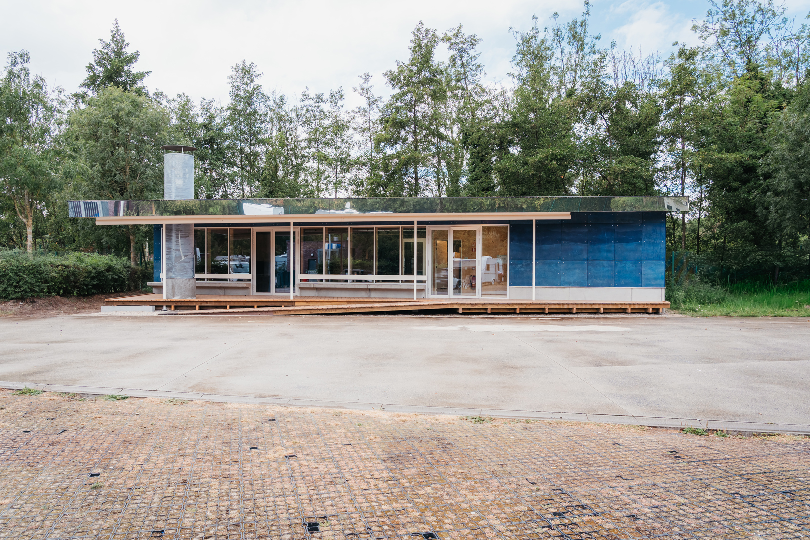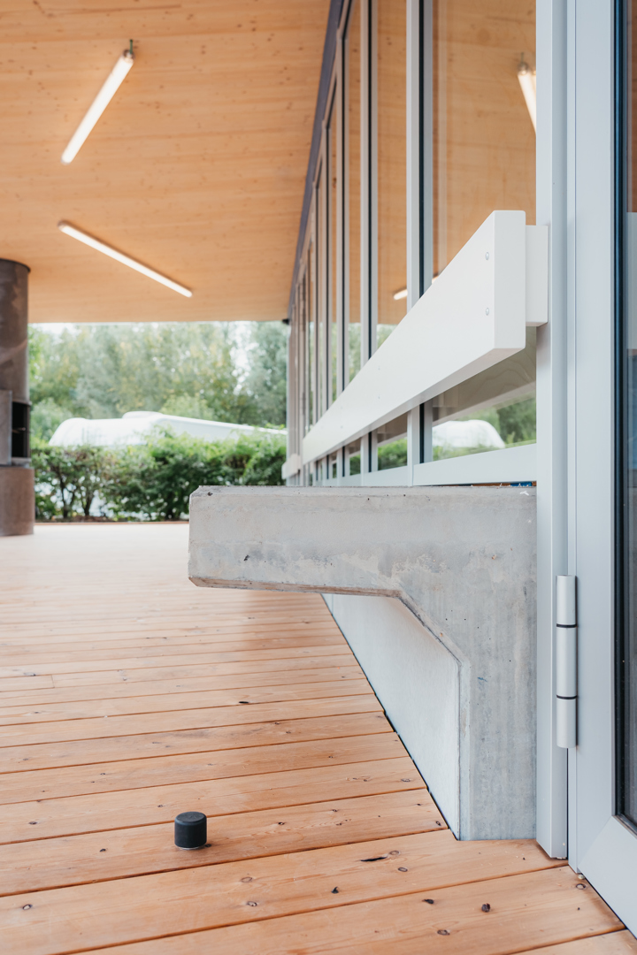 DOOR reageert ook op de ruimtelijke context. Het terrein ligt nabij de Bourgoyen, een groene en rustige omgeving, maar mist visuele samenhang. De oorspronkelijk voorziene bouwzone lag eerder weggestopt, alsof het ging om een achterruimte. MARCEL architecten kozen ervoor om het paviljoen net als een centrale ankerplaats te benaderen, met een ontwerp dat openheid en verbondenheid uitstraalt. Details zoals gevelbanken en een licht verhoogde vloer dragen bij aan het karakter en refereren subtiel aan het leven in en rond een woonwagen.
