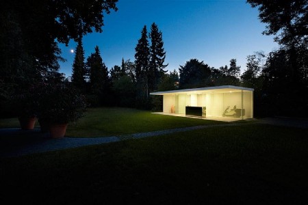 In onze reeks Inspirerende tuinhuisjes en poolhouses steken we ditmaal de grens over naar Munchen. Hier vinden we een poolhouse van Philipp Baumhauer dat faciliteiten als een douche, kleedkamer en toilet in een vitrine plaatst.