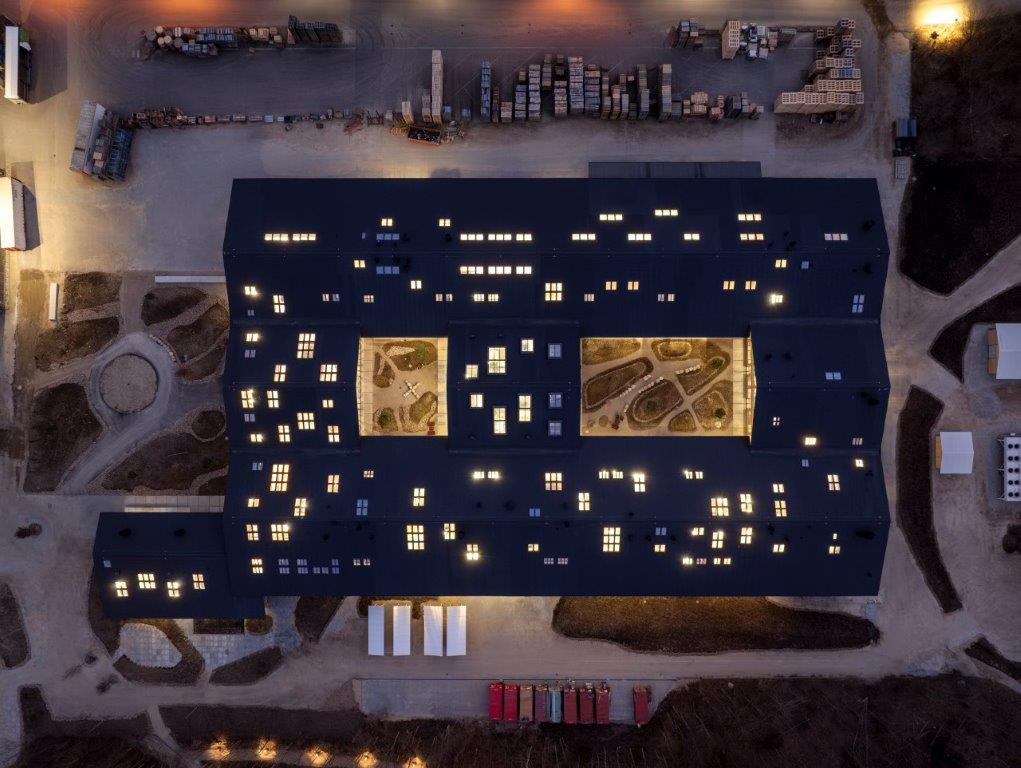Dat duurzaamheid en minimalisatie van de CO2-footprint primaire uitgangspunten waren bij de realisatie van het LKR Innovation House hoeft evenmin te verwonderen. In plaats van het bestaande loodsencomplex af te breken en te vervangen door een nieuwbouw opteerde VELUX Group voor een doorgedreven reconversie, die in goede banen werd geleid door Praksis Arkitekter.