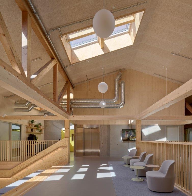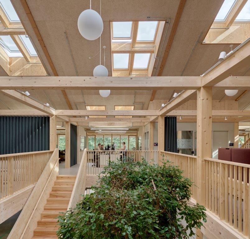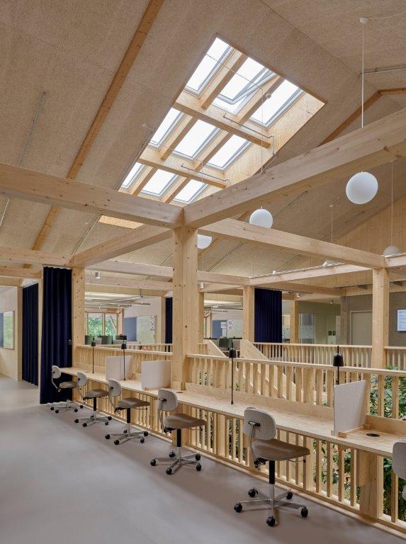 Het mag duidelijk zijn: ‘practice what you preach’ is geen holle slagzin in het LKR Innovation House. VELUX is er met verve in geslaagd om zijn idealen in de praktijk te brengen én er een echte thuis voor zijn medewerkers van te maken. Samen met de warmte van het hout dragen de natuurlijke lichtinval en de uitstekende binnenluchtkwaliteit – niet toevallig de twee focusdomeinen van VELUX Group – bij tot hun comfort, gezondheid en algemeen welzijn. Dat het gros van de medewerkers een dag op kantoor prefereert boven thuiswerk is het beste bewijs dat deze missie meer dan geslaagd is.