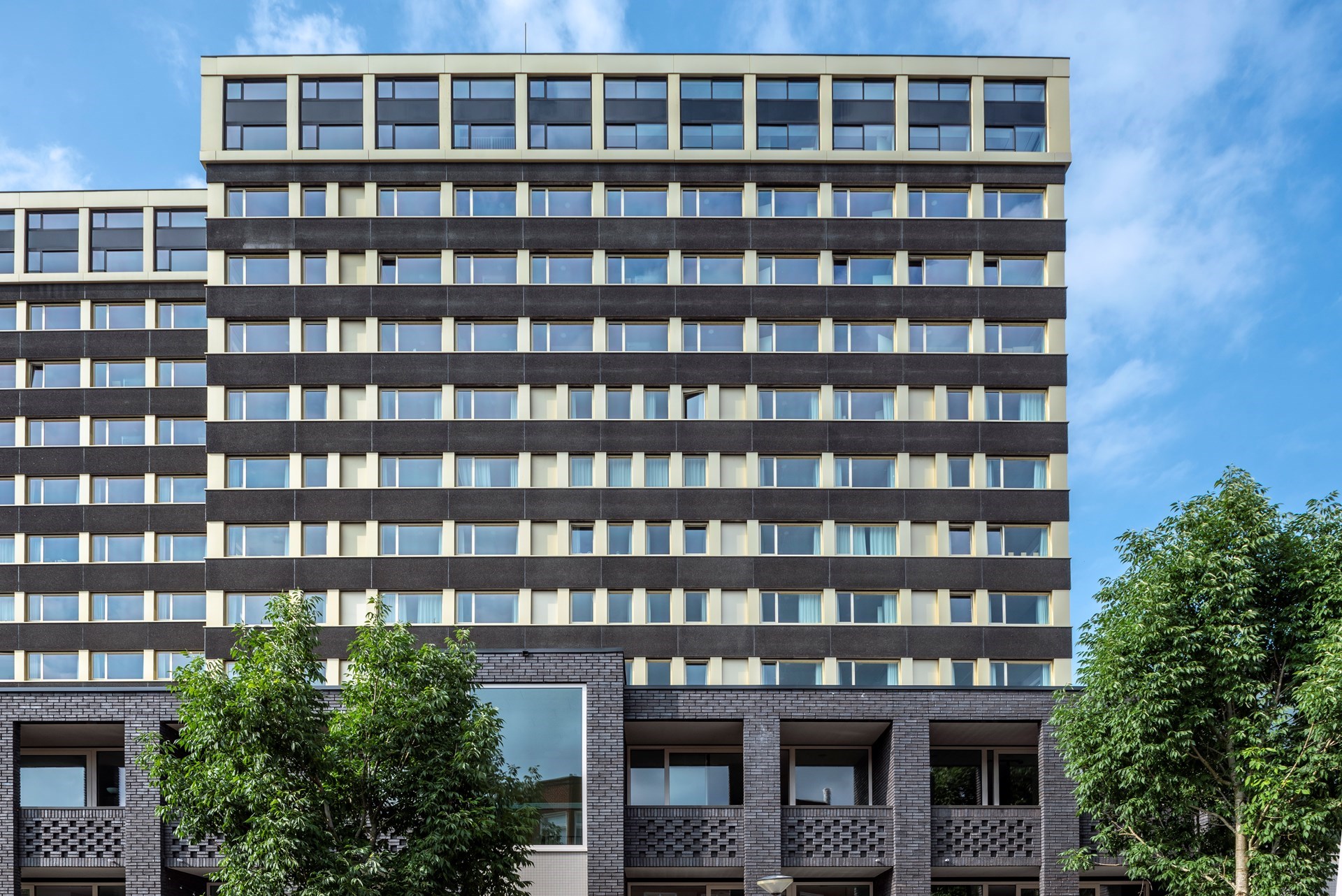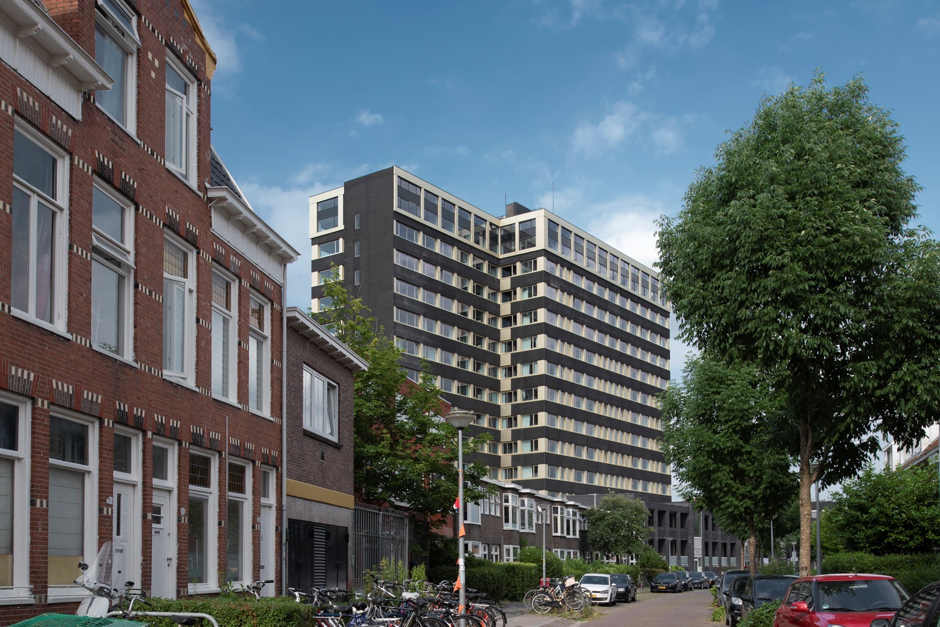 Recent onderging het een transformatie tot een studentenhuisvesting met 300 zelfstandige woningen en 1500 vierkante meter multifunctionele ruimte in de plint van het gebouw naar een ontwerp van Team 4 Architecten. De traditionele kantoormaten uit 1976 bleken uitermate geschikt voor een invulling met appartementen. Ook de gevel onderging een opfrisbeurt. De typerende gevelelementen van zwart grindbeton bleven grotendeels behouden. Enkel in de hoeken moesten ze plaats ruimten om overhoekse ruimten in de appartementen te creëren. De overige gevelpanelen en alle kozijnen zijn vervangen door nieuwe champagnekleurige aluminium kozijnen en aluminium penanten van ALUCOBOND®. Met deze materiaalkeuze streefde het ontwerpteam naar een nieuwe plasticiteit voor de gevel met een kleinschaliger ritme dat beter aansluit bij het nieuwe woonprogramma.